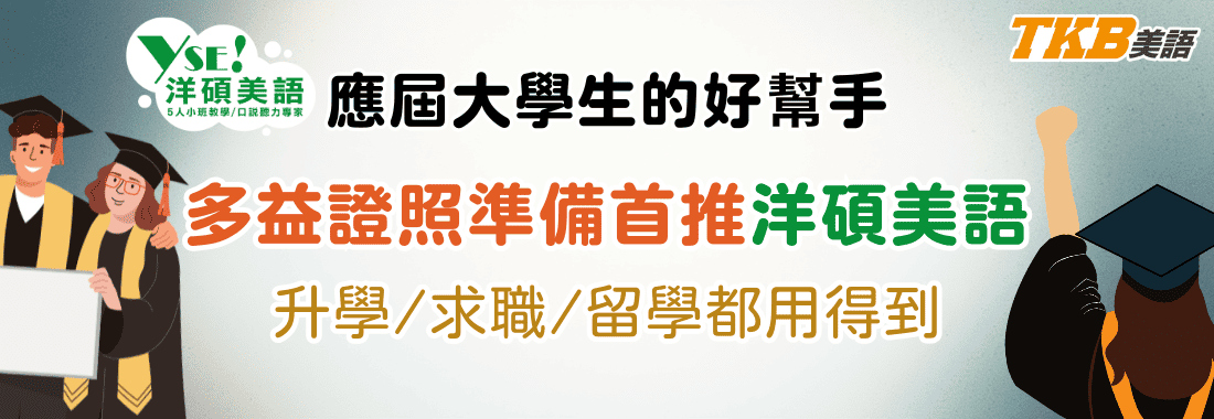 報考研究所、爭取出國交換、出社會找工作,常需要具備亮眼的多益證照,提早為多益做準備成為從大眾脫穎而出的關鍵。 大學生的好幫手「洋碩美語」,專門為不同需求的學員打造多樣化的多益課程,包括「多益字彙班」、「多益解題班」及「多益說寫班」,加強你的基礎能力與解題技巧。