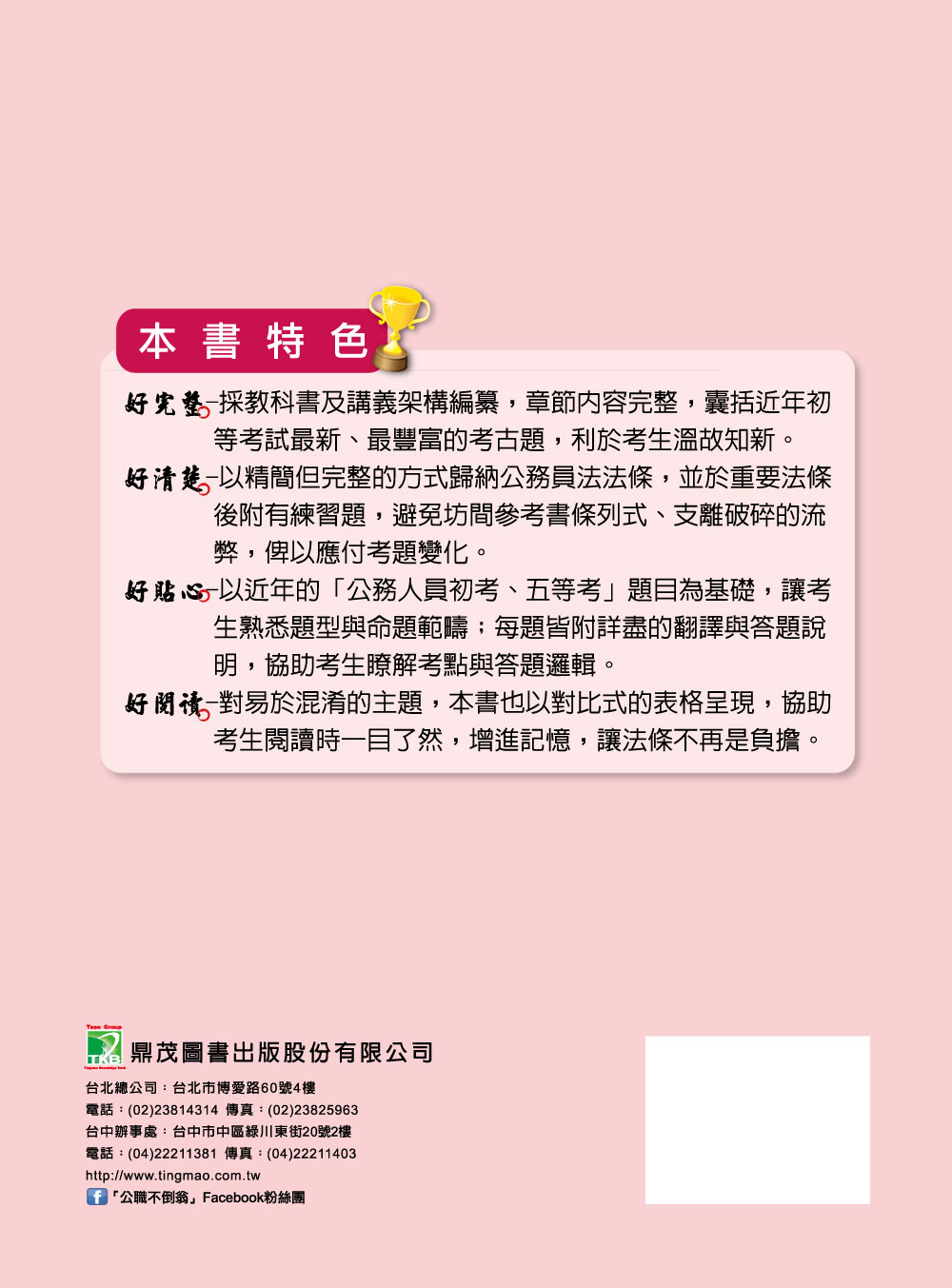 好貼心-以近年的「公務人員初考」題目為基礎,讓考生熟悉題型與命題範疇;每題皆附詳盡的翻譯與答題說明,協助考生瞭解考點與答題邏輯。