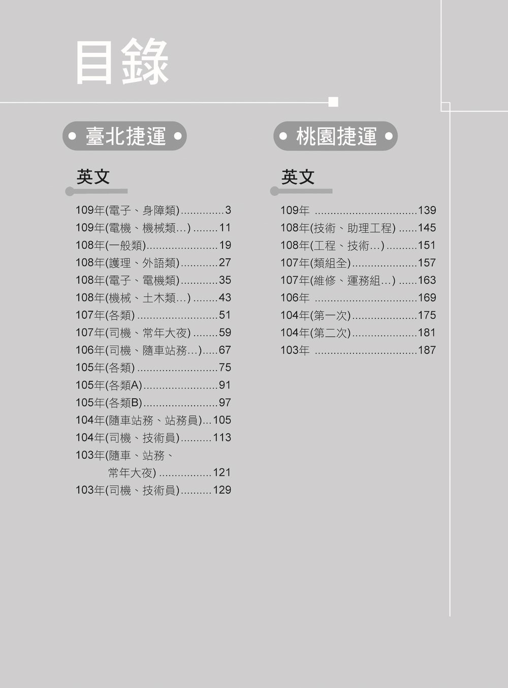 本書收錄考試包含:臺北捷運、桃園捷運。