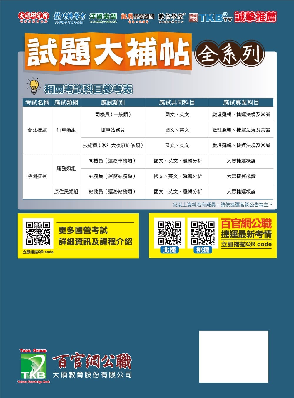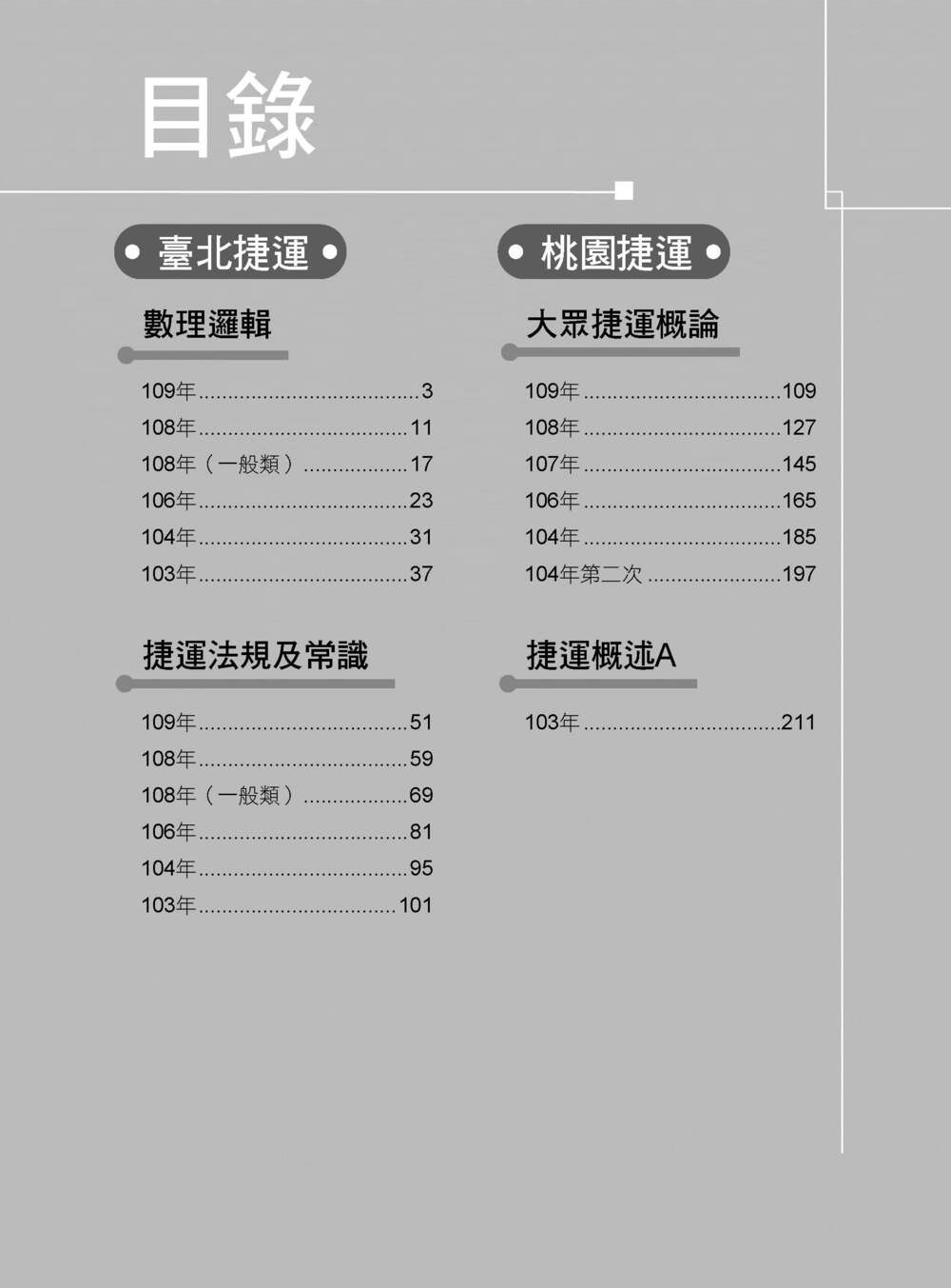 本書收錄考試包含:臺北捷運、桃園捷運。