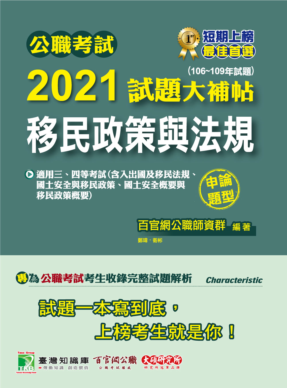 本書收錄公職考試【移民政策與法規】106~109年共四年的申論試題詳解,幫助您一次準備全面應戰、熟悉題型順利上榜。