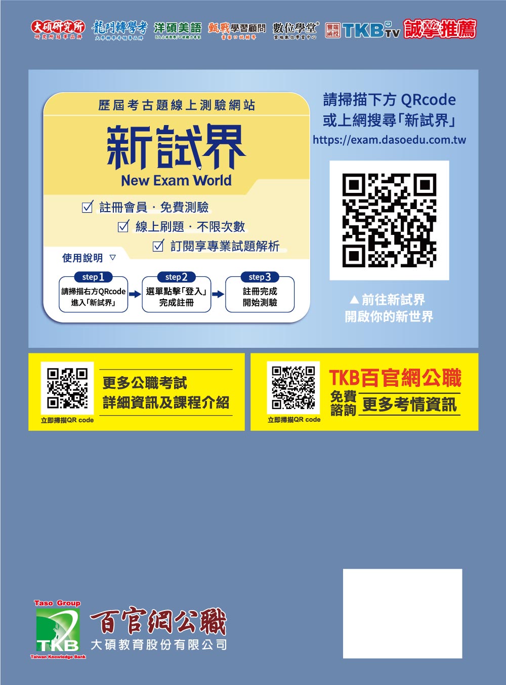 精選多年度公職考試歷屆試題,讓你省去到處尋找考古題的煩惱!