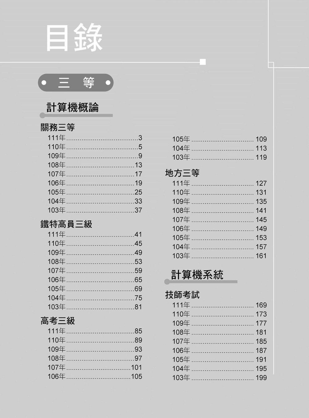 本書收錄公職考試【計算機概論(含計算機系統)】103~111年共九年的申論試題詳解,幫助您一次準備全面應戰、熟悉題型順利上榜。