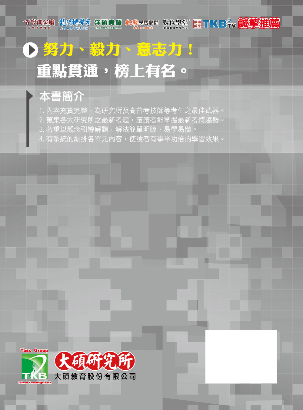1.內容充實完整,為研究所及高普考技師等考生之最佳武器。