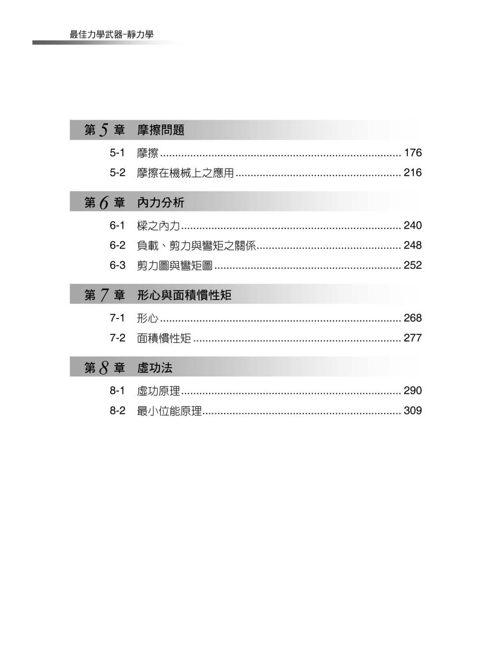 學習靜力學的主要目的在於啟發學生運用簡單且合乎邏輯的方式去分析工程上受力而靜止之物體其平衡條件及關係,並利用一些基本的力學原理去解決問題。就研究所升學考試而言,靜力學除了是某些組別的專業必考科目以外,它也是動力學與材料力學的先修課程。所以筆者以去蕪存菁之方式將靜力學之重要內容濃縮整理成此書,期望能提高讀者之學習效率並縮短應考之準備時間。此外,本書大量收錄了近幾年的研究所入學考試的靜力學相關試題,以便讓讀者能掌握最新的考題趨勢,了解各校之出題風格與偏好。