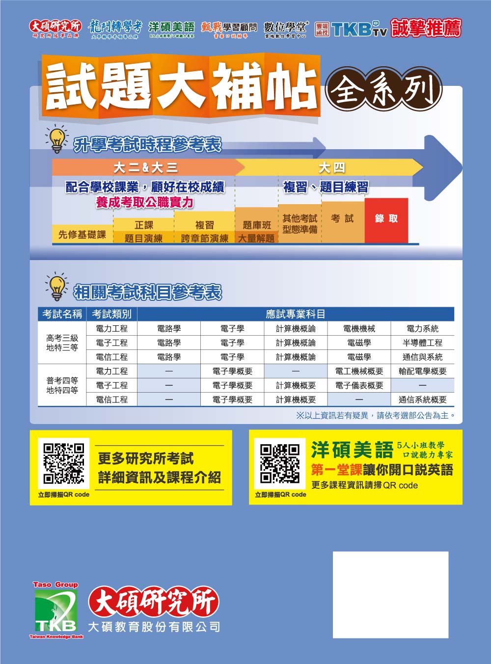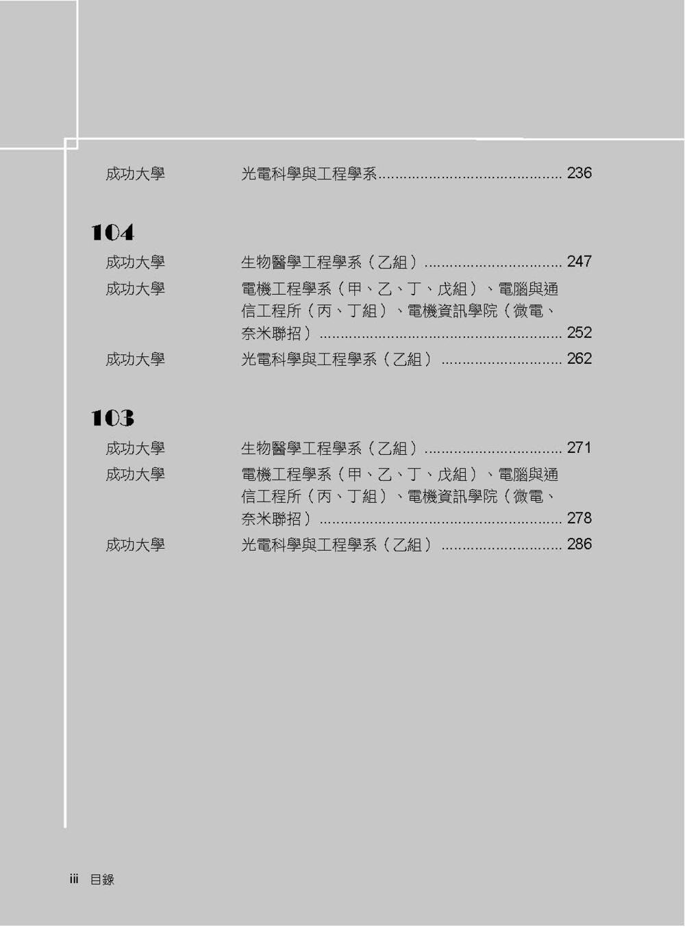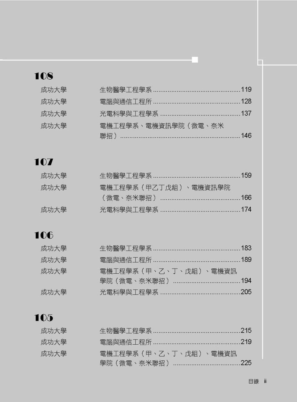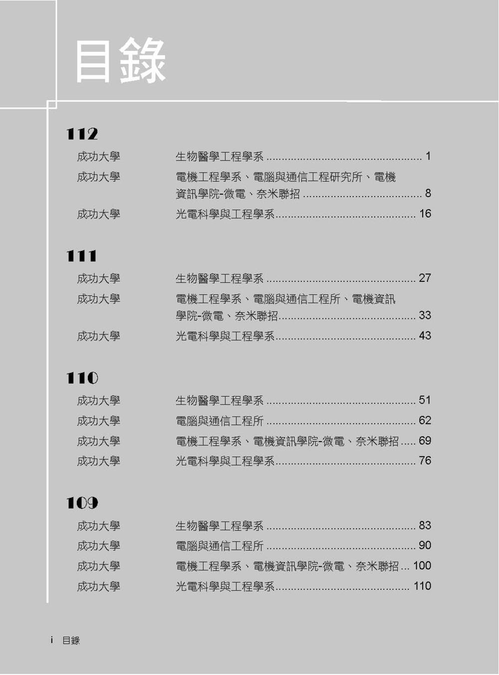 成功大學 電機工程學系(甲、乙、丁、戊組)、電腦與通信工程所(丙、丁組)、電機資訊學院(微電、奈米聯招)