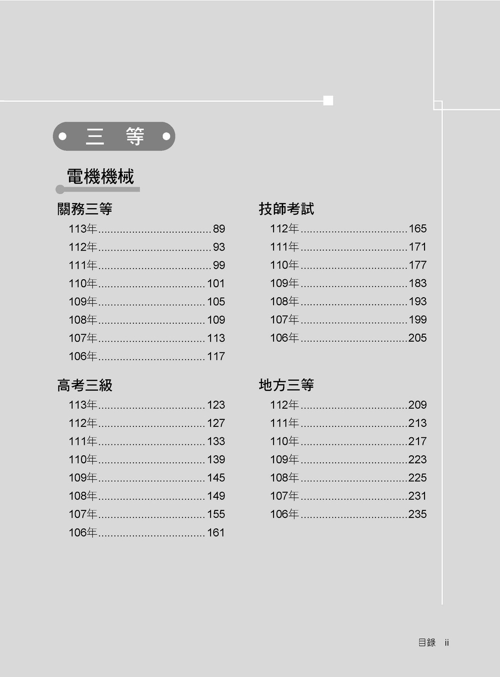 本書收錄考試包含:高考三級、關務特考、普考、地方特考、技師考試