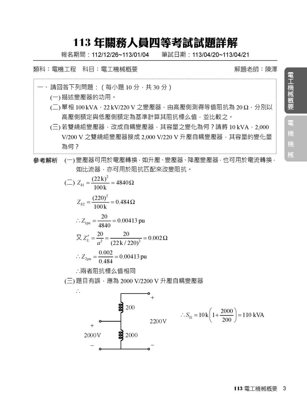 本書收錄公職考試【電機機械(含電工機械概要)】106~113年的申論試題詳解,幫助您一次準備全面應戰、熟悉題型順利上榜。