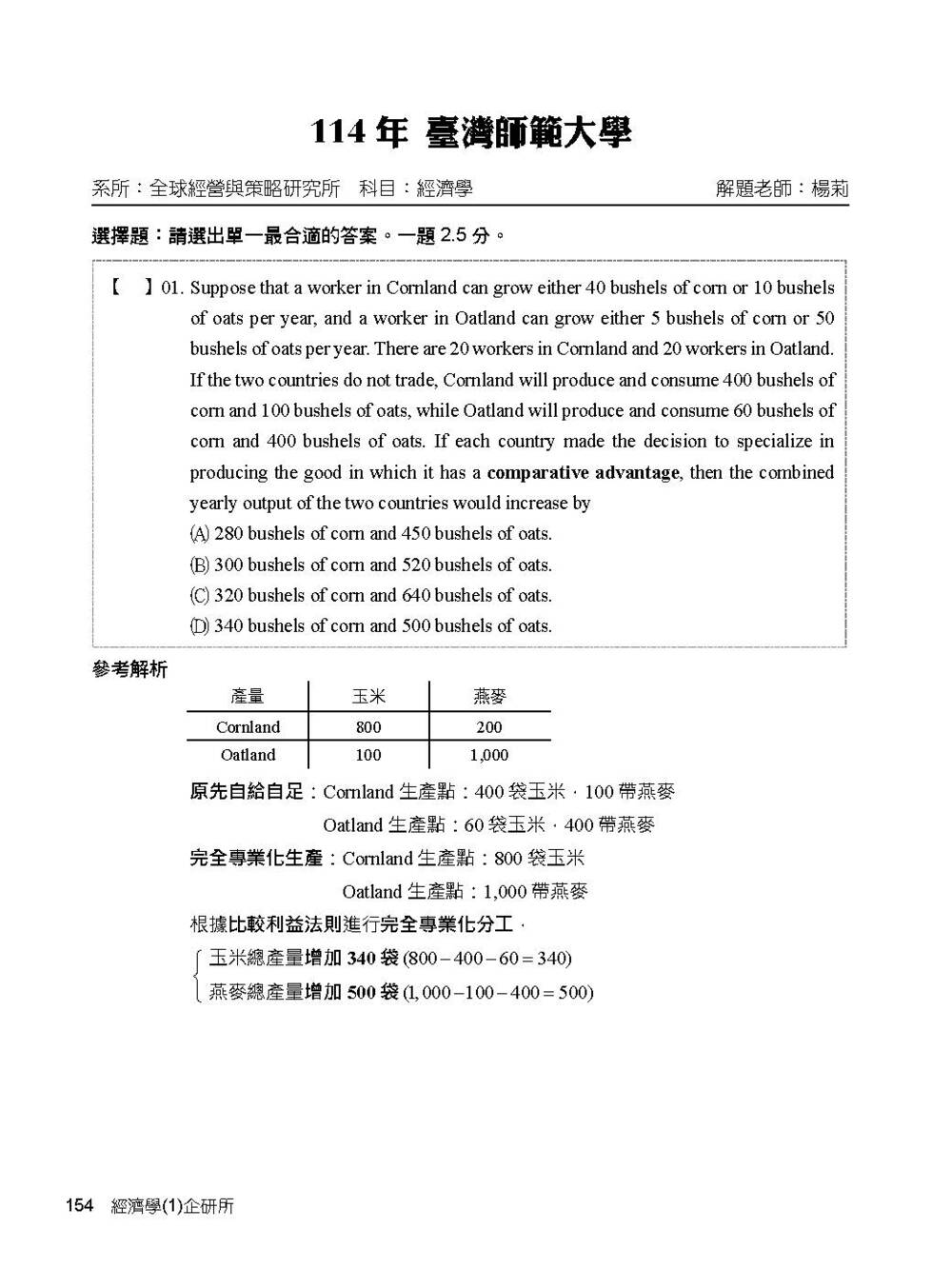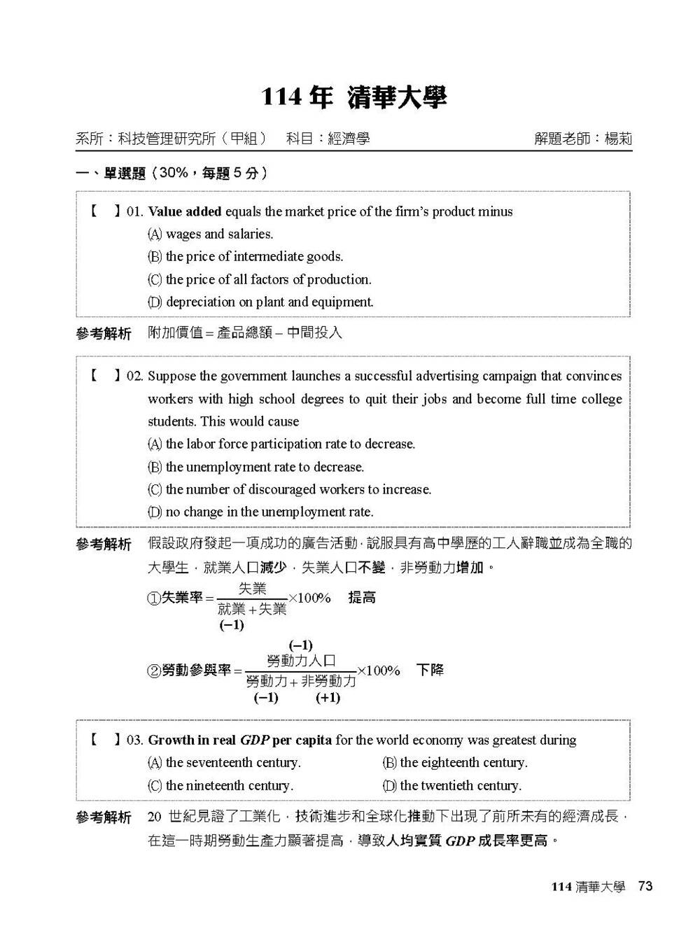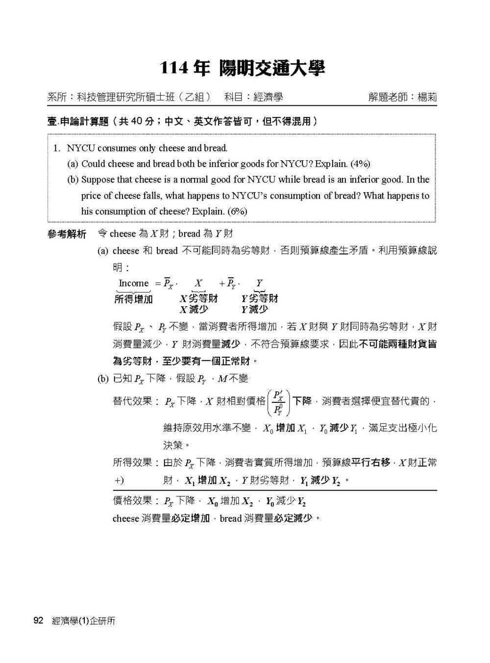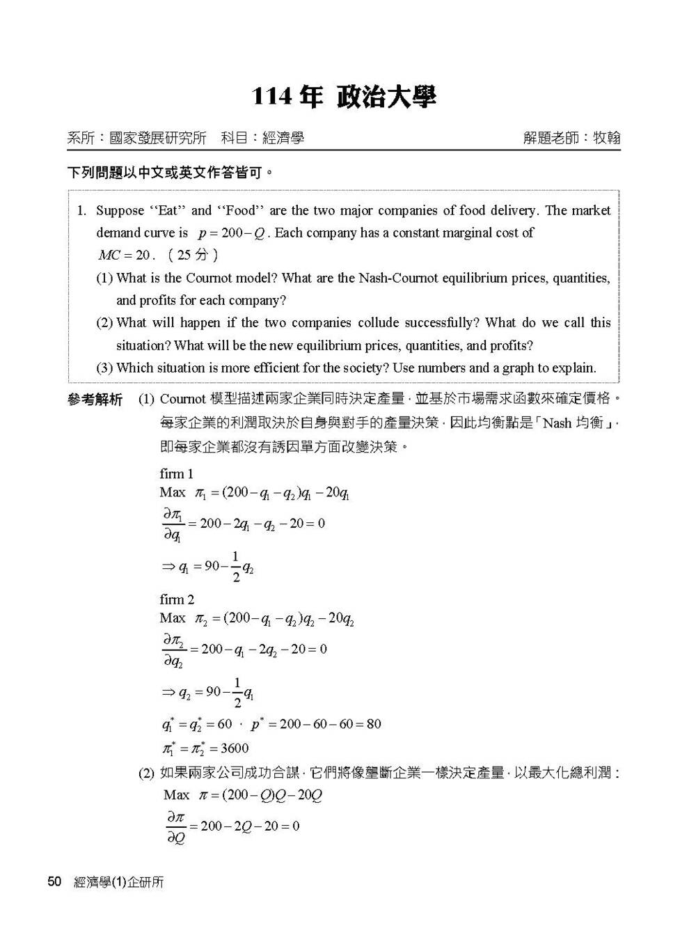 1.本書收錄國內各重點大學企研所112~114年【經濟學】共三年試題含解析。