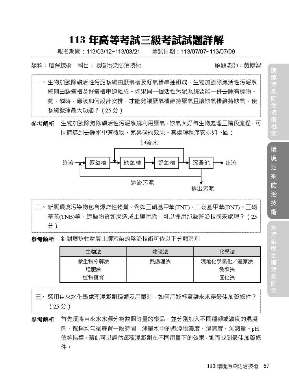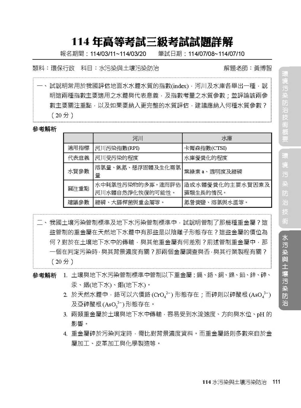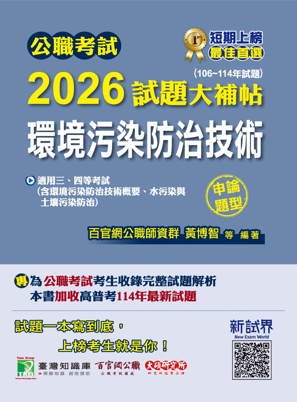 本書收錄科目包含:環境污染防治技術概要、環境污染防治技術、水污染與土壤污染防治