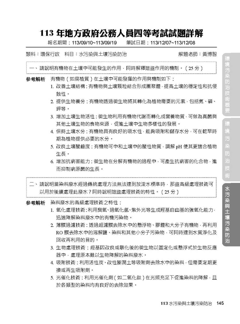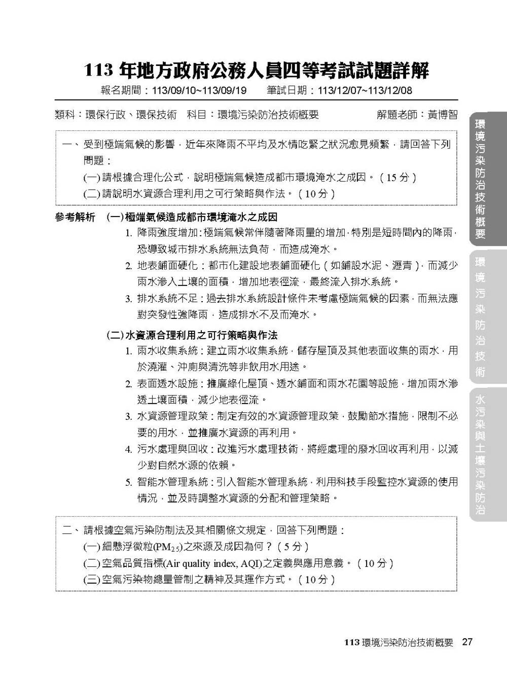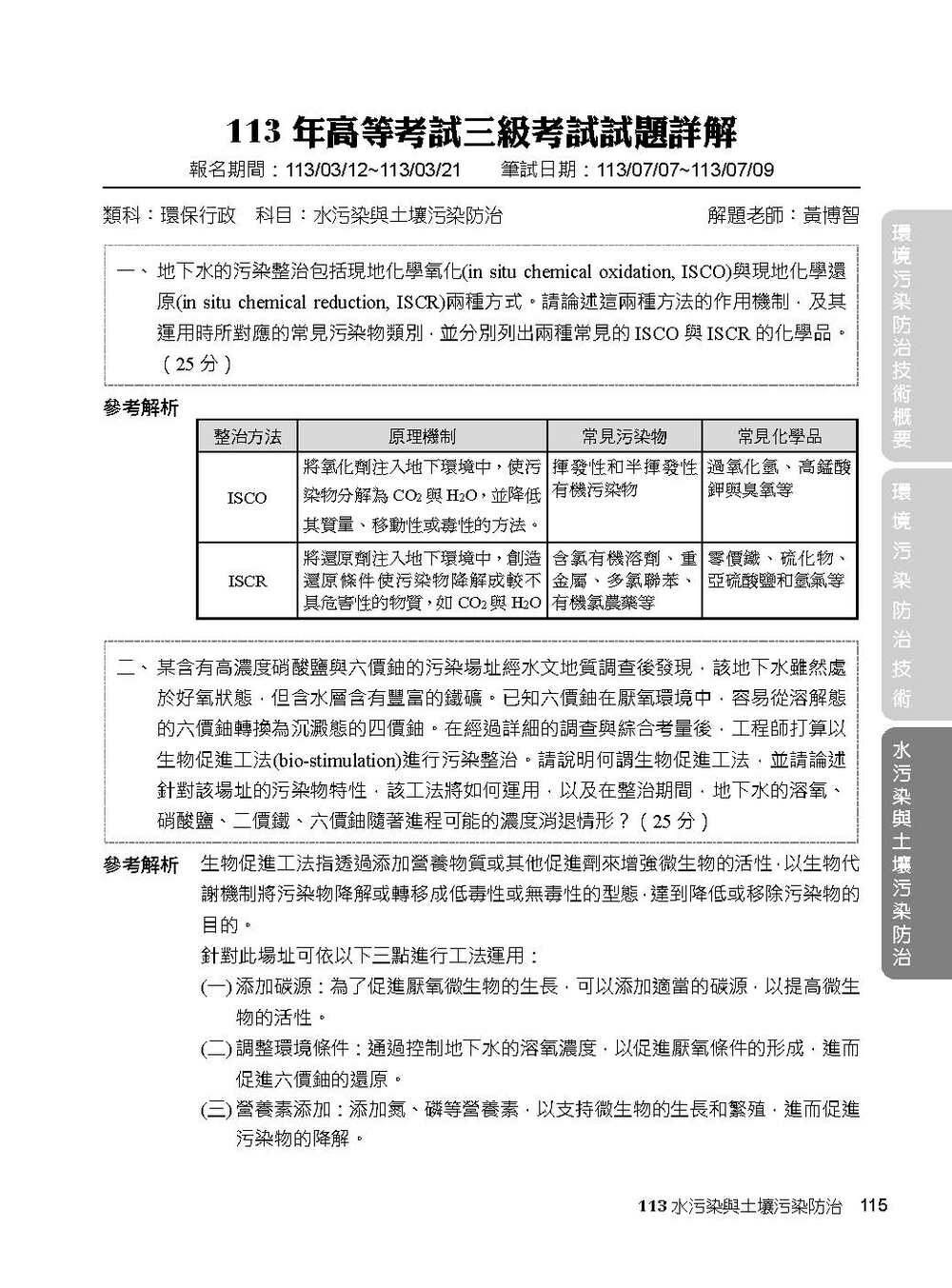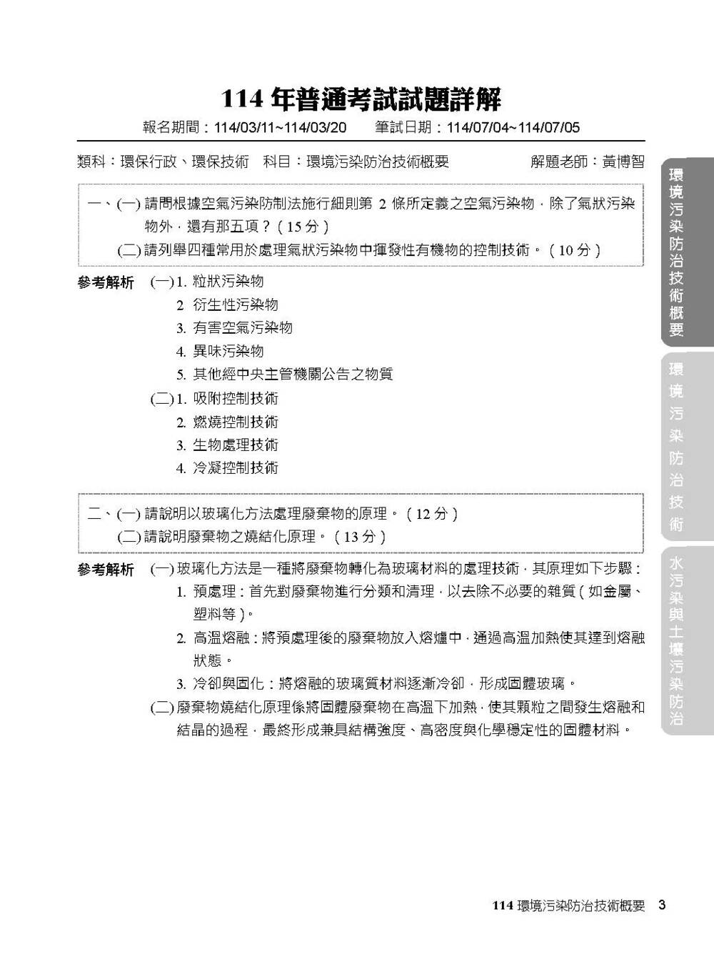 本書收錄科目包含:環境污染防治技術概要、環境污染防治技術、水污染與土壤污染防治