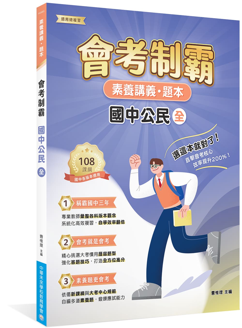 【會考制霸】系列書籍由中華未來學校教育學會專業團隊編寫,本書結合「講義」與題本,講義內容綜整重要觀念,加強學生對於知識點的理解與記憶,再藉由演練精選歷屆題與原創素養題,強化答題實力,學習效率up!