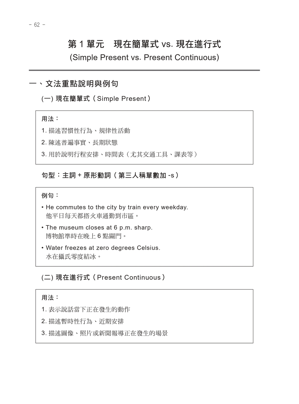 第 1 單元 現在簡單式 vs. 現在進行式 (Simple Present vs. Present Continuous)