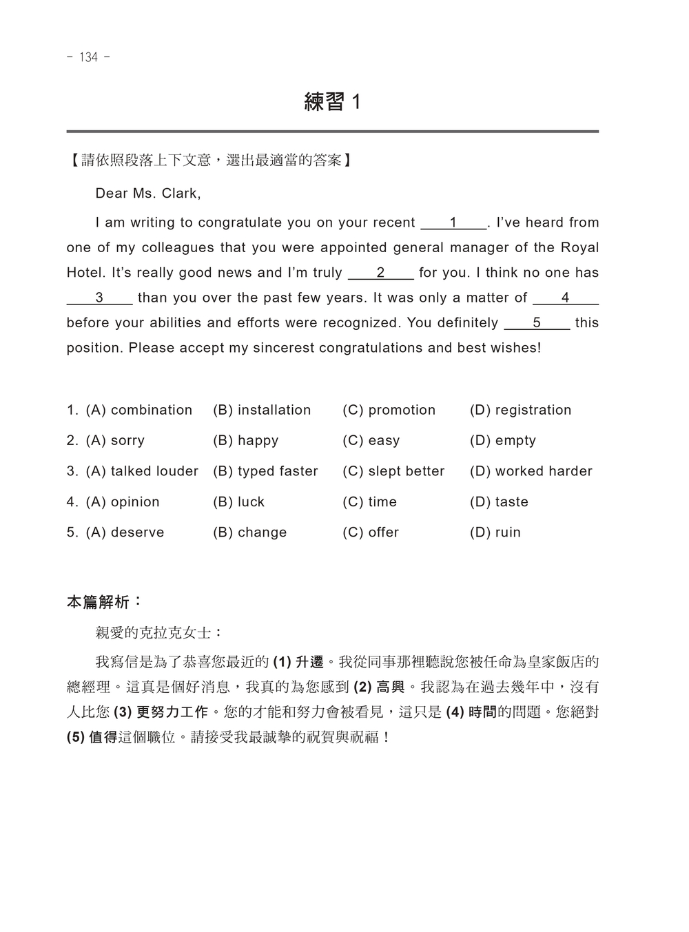 第三章與第四章收錄多篇模擬題,題材涵蓋郵務公告、客戶服務、運輸管理等主題,貼近考題語境,訓練同時理解與答題能力。
