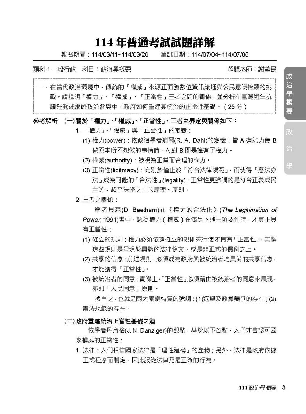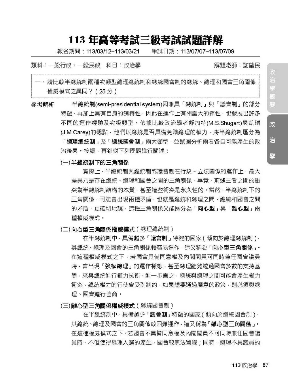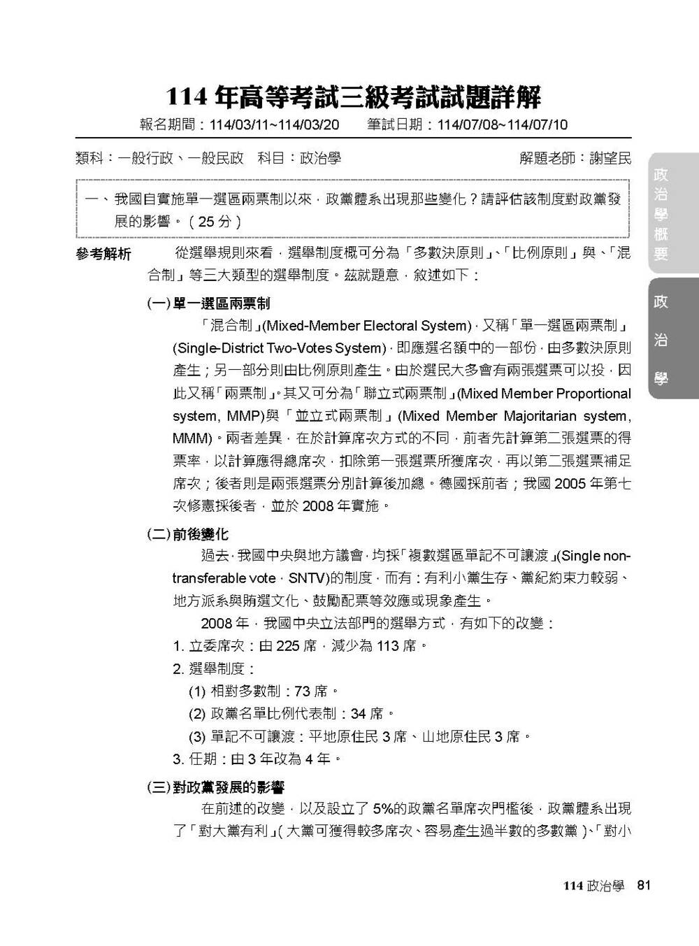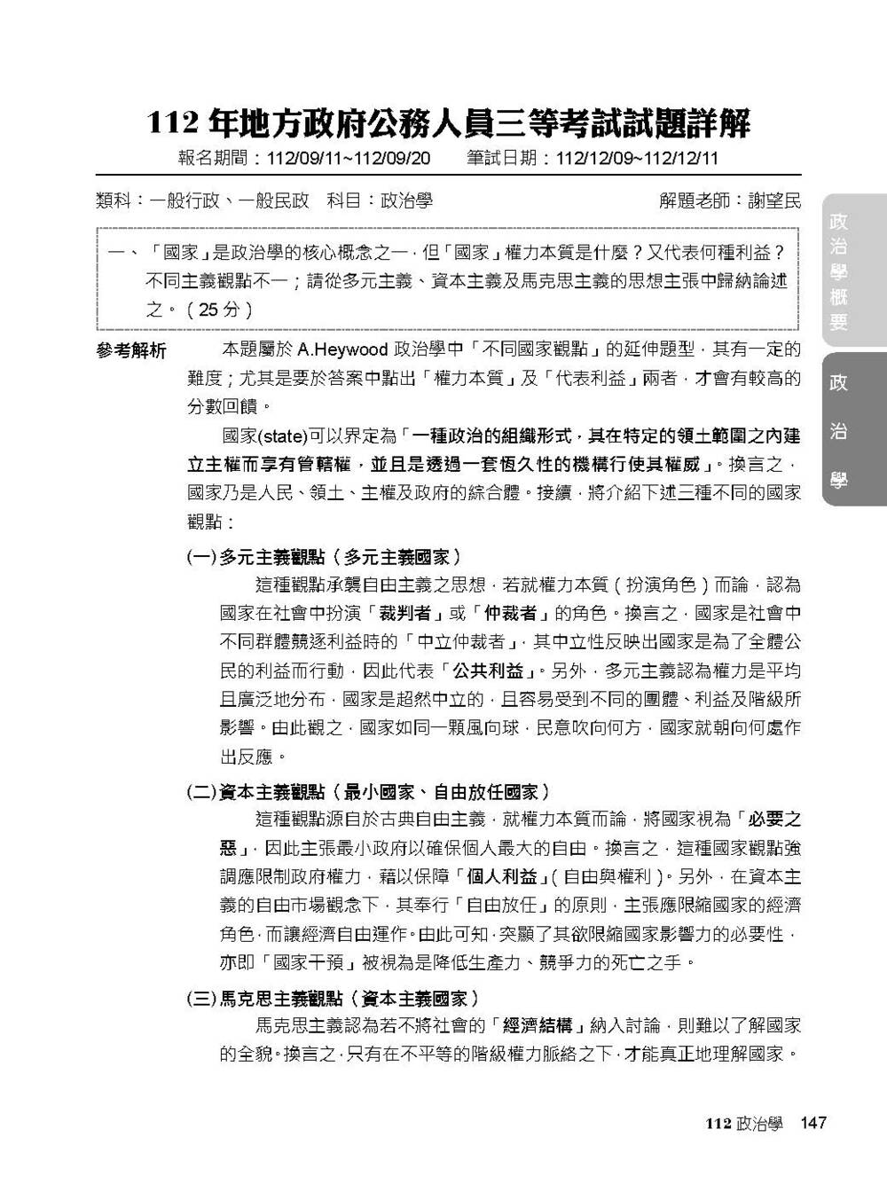 (2) 政治學(分為申論題型、測驗題型兩種試題書)