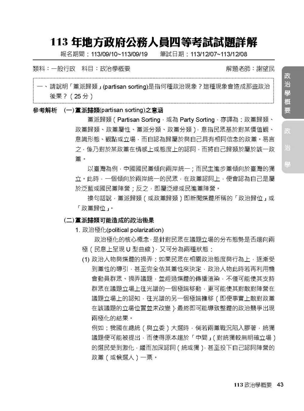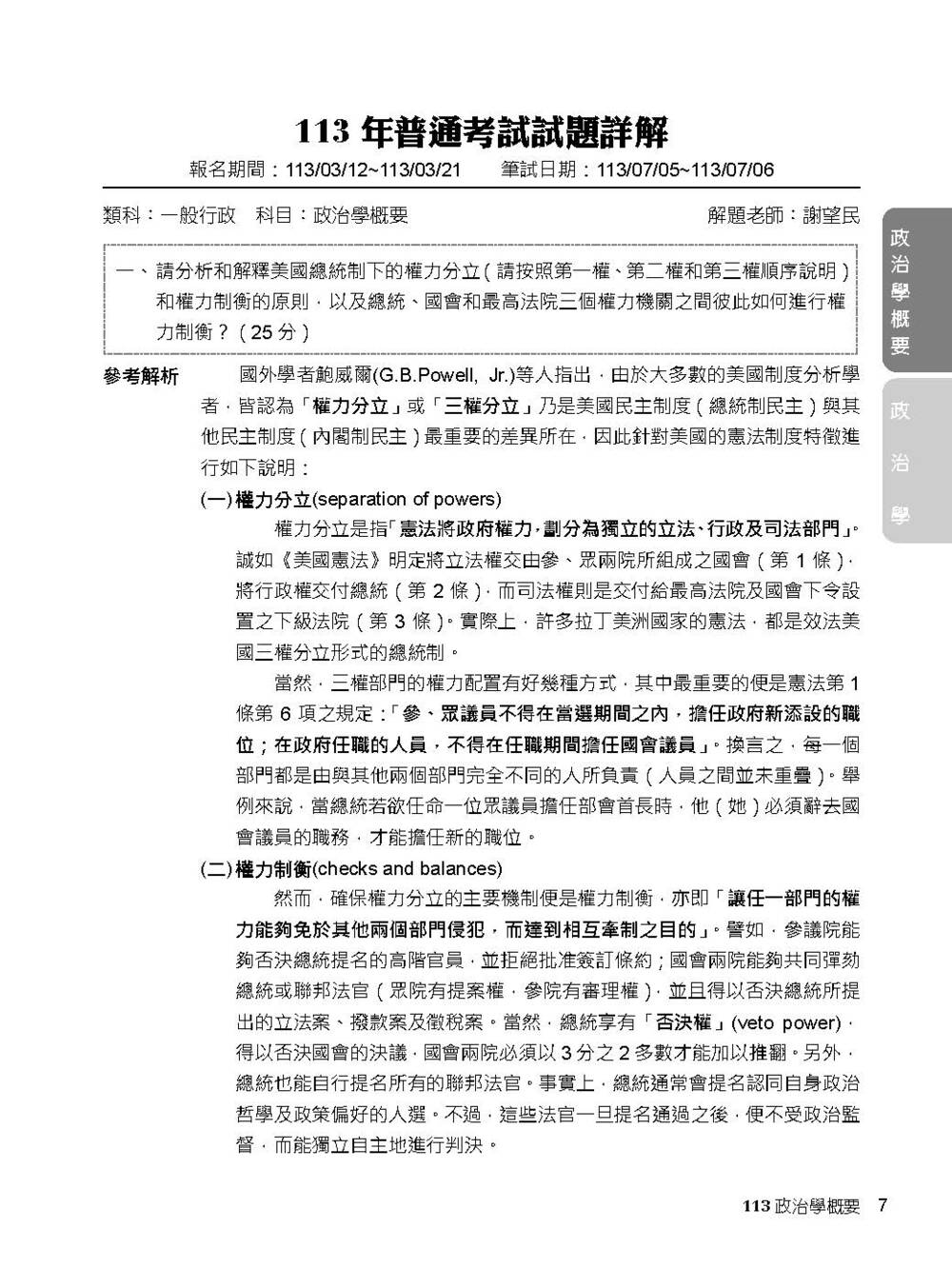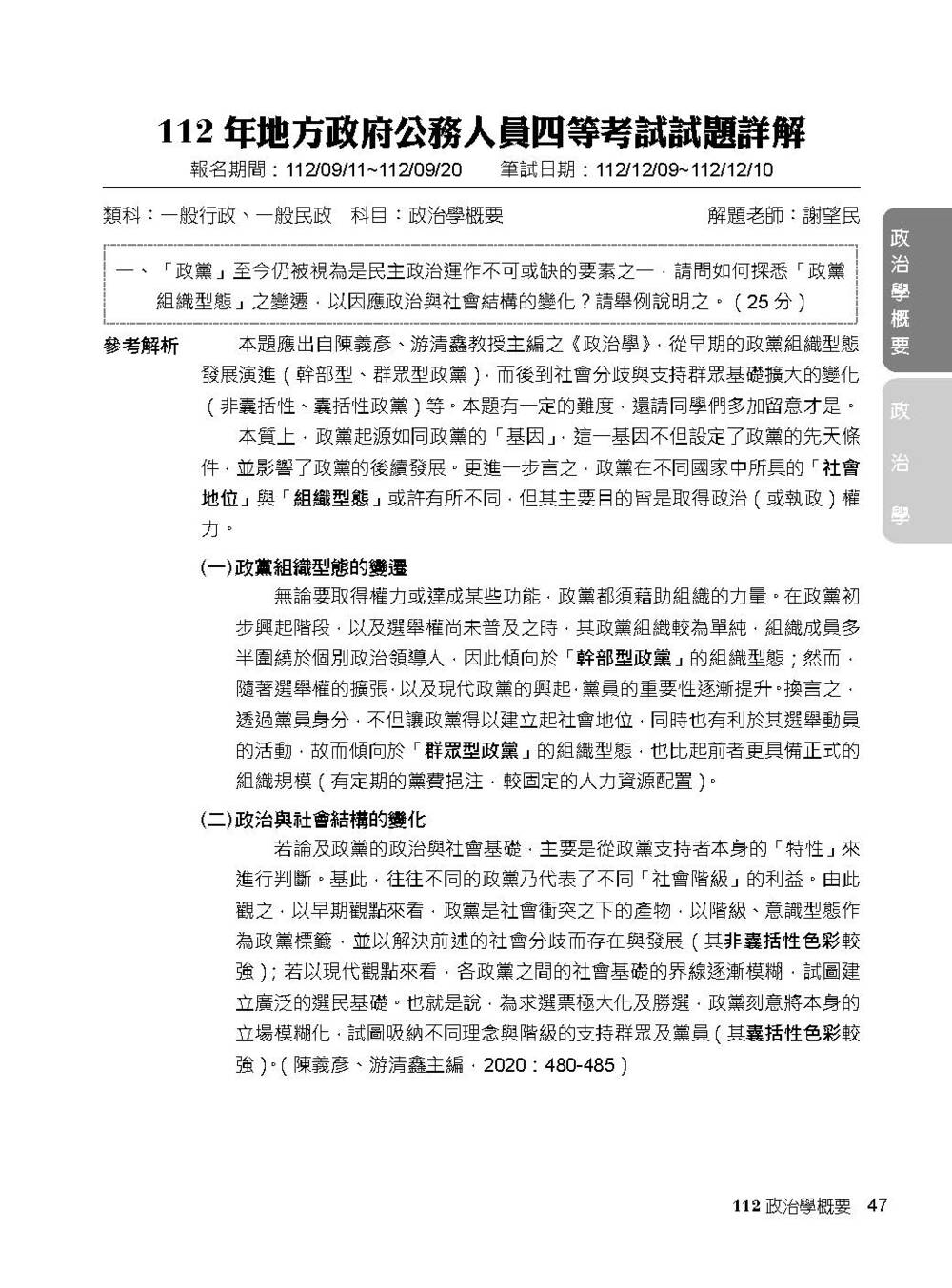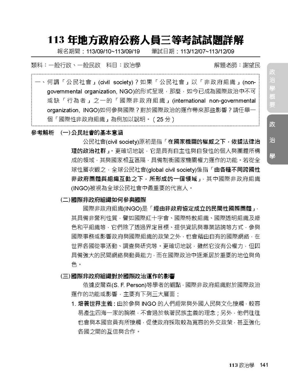 (2) 政治學(分為申論題型、測驗題型兩種試題書)