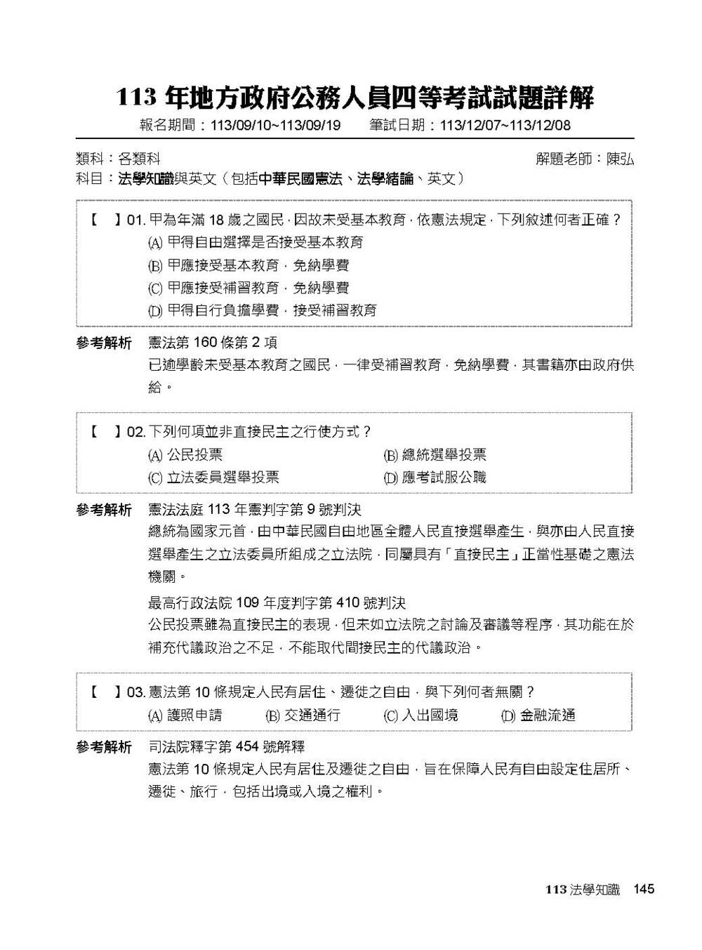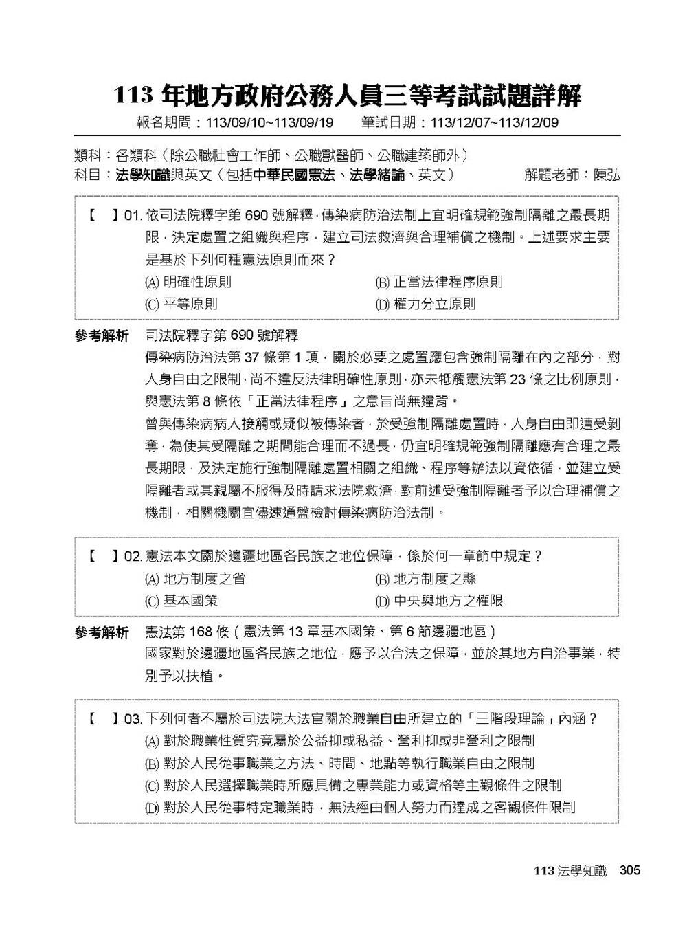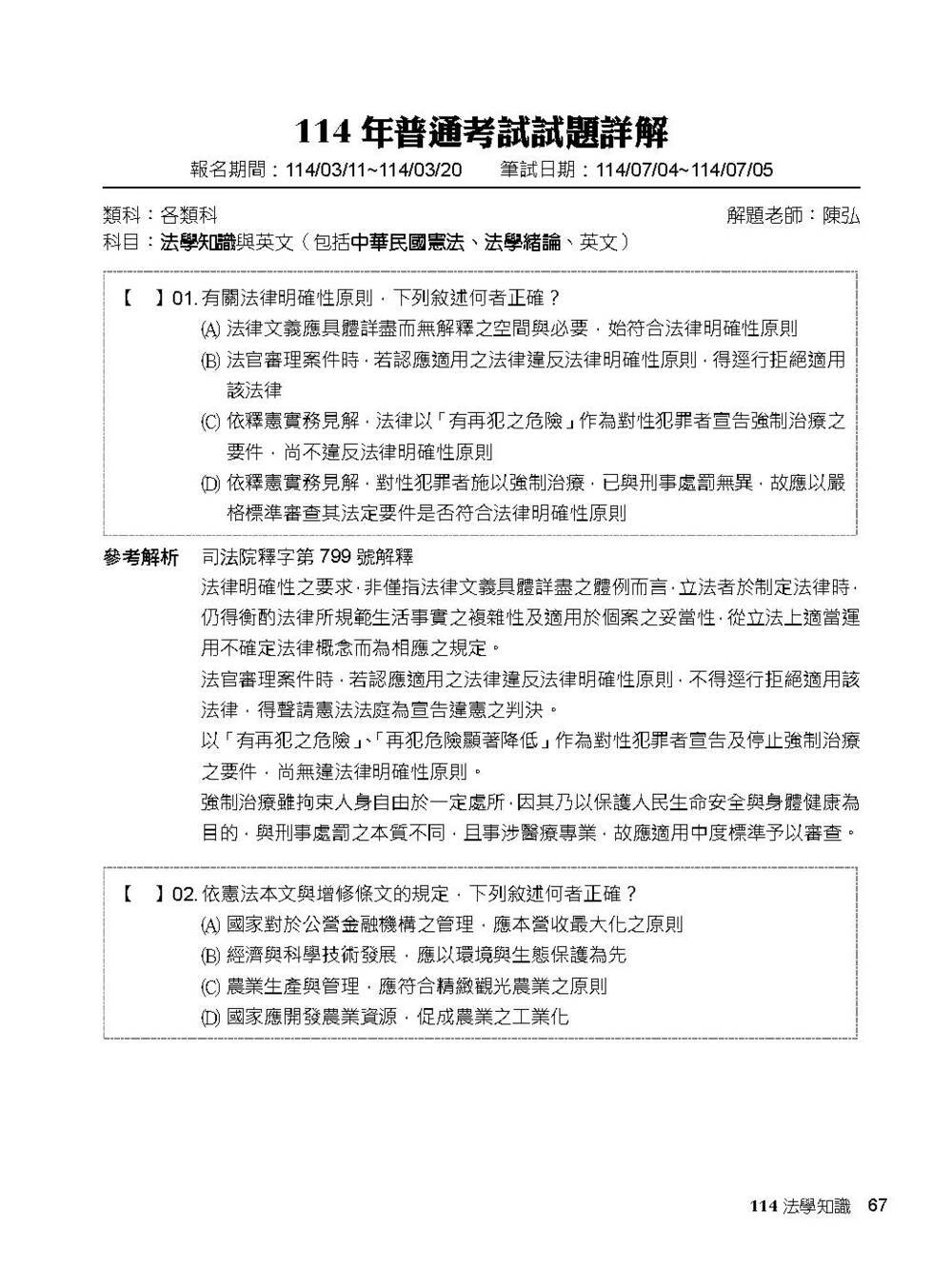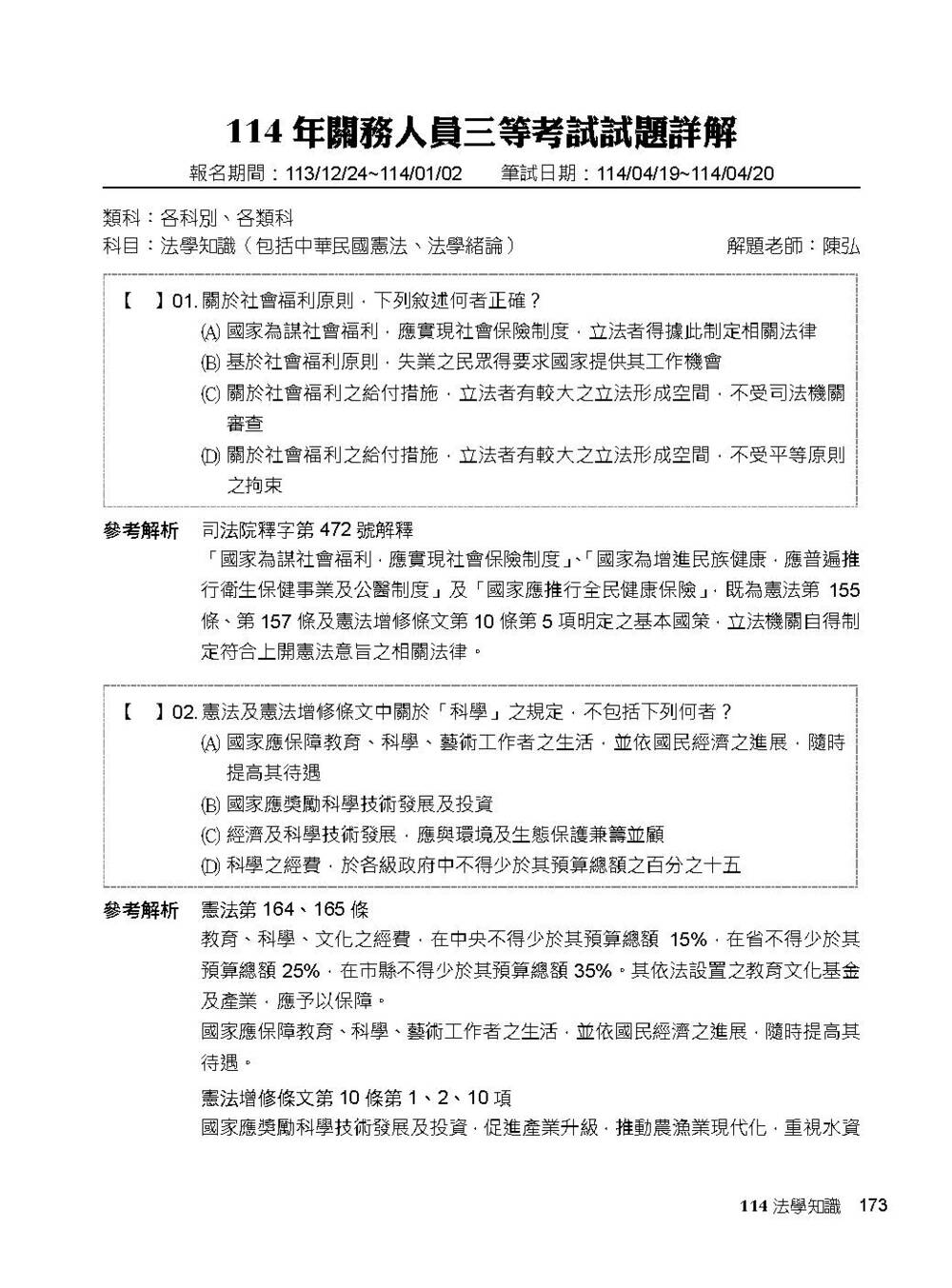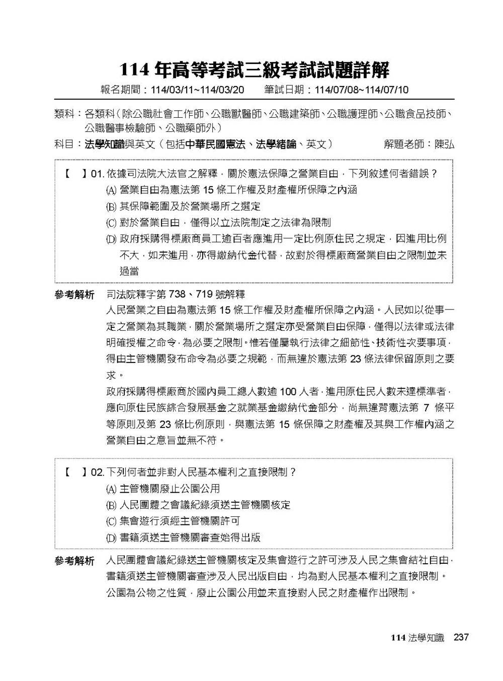 專為【高普考】、【地方特考】考生出版的解題書,完整收錄【法學知識】112~114年試題,考前衝刺必備大補帖——
