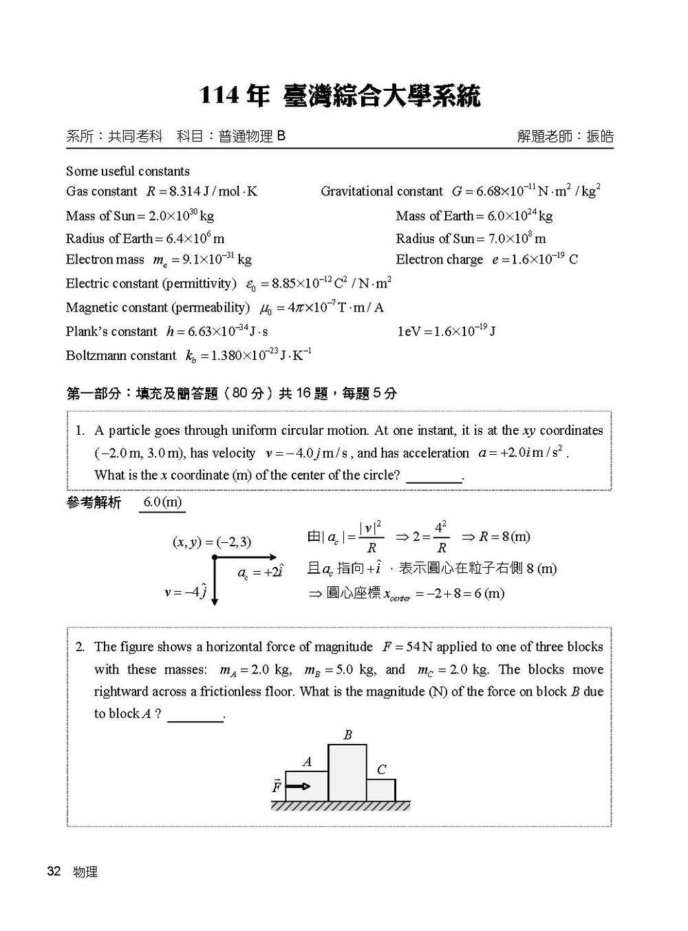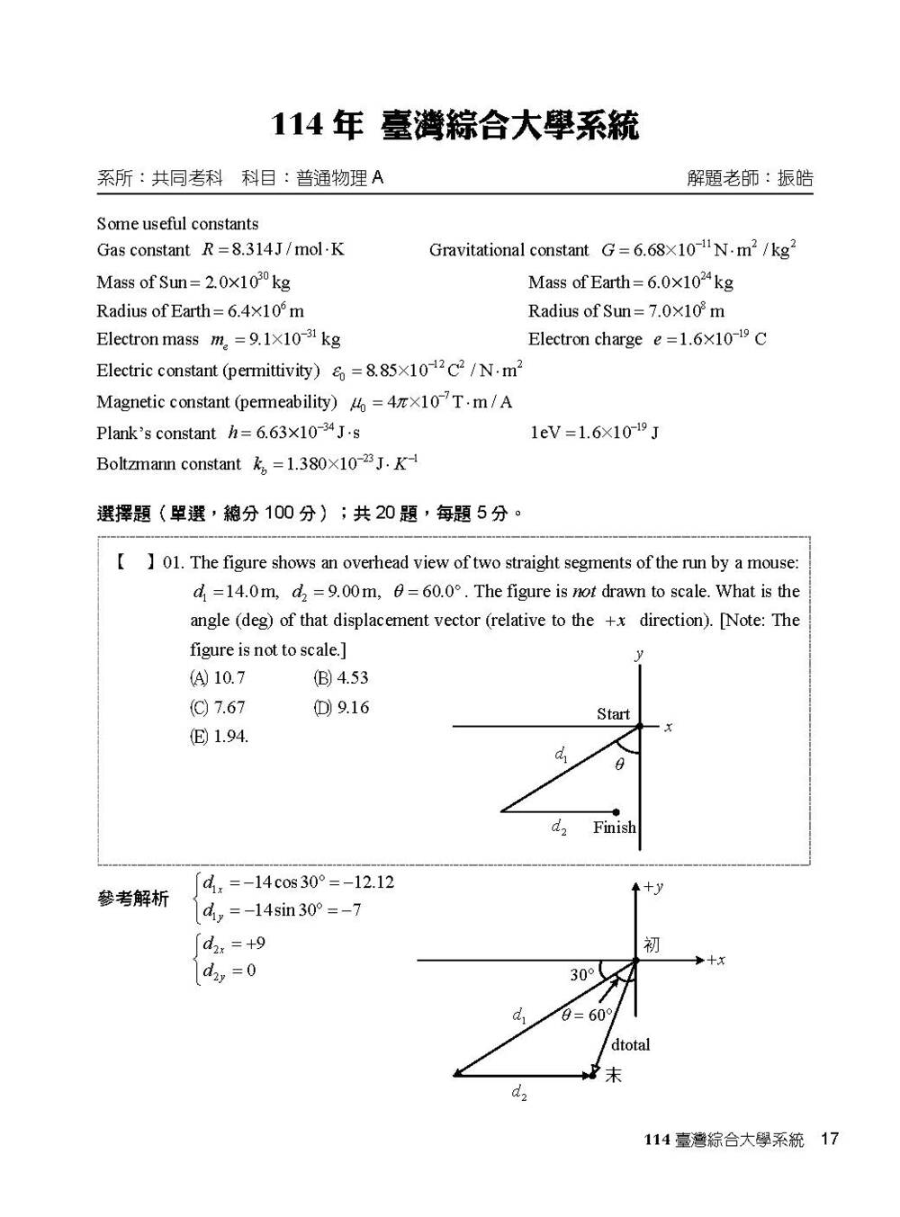大一物理科目重點為強化高中物理的核心概念,特別針對理工各學系的核心概念知識進行系統整理,本書試題按照年度排列收錄歷屆考題及詳解,讓考生迅速掌握出題方向與知識點,不需費力上網爬文找歷屆試題,只要一本試題大補帖在手,便能立即實戰演練,並有效整理歷屆考試重點,作為考前衝刺複習書。