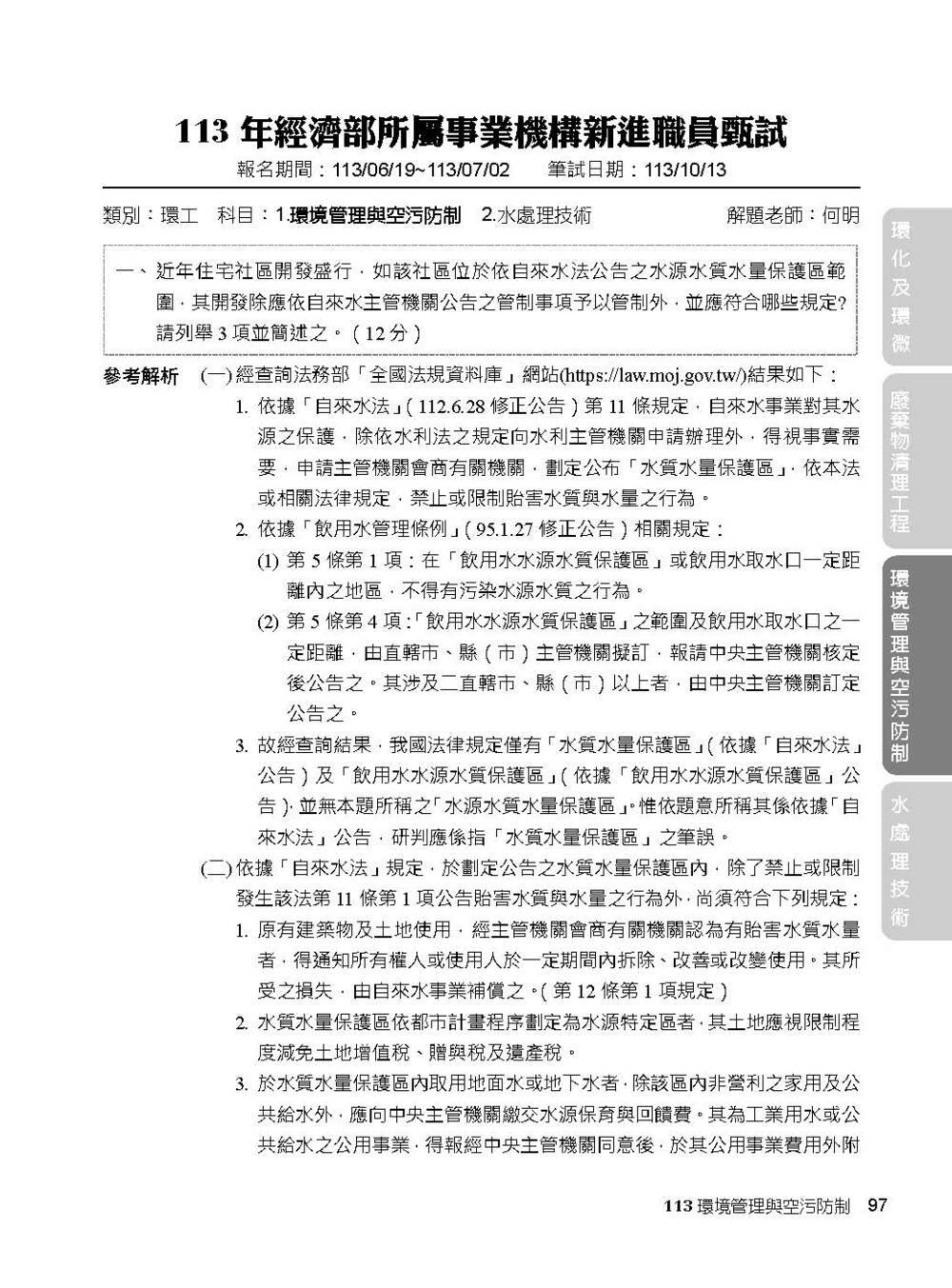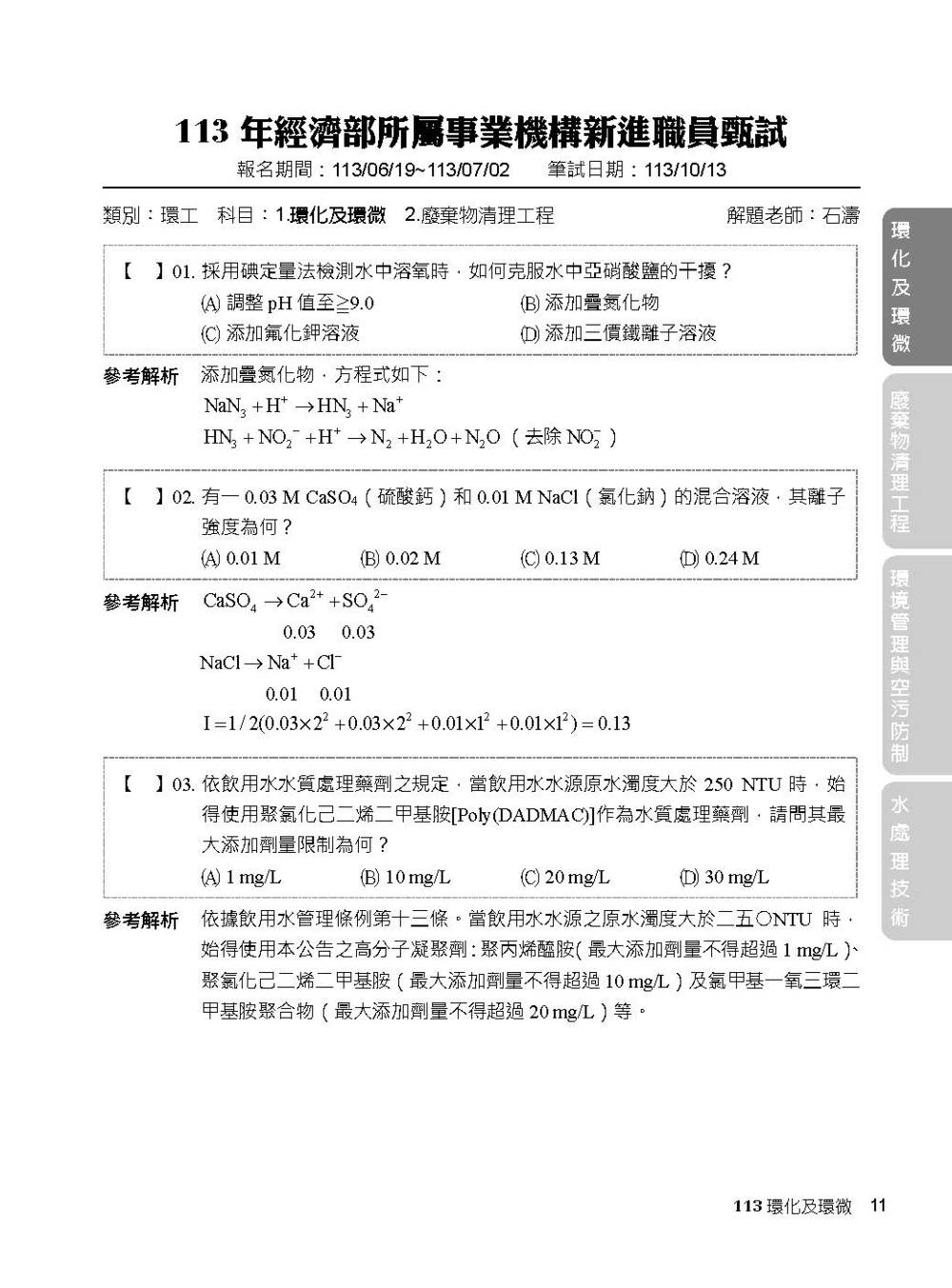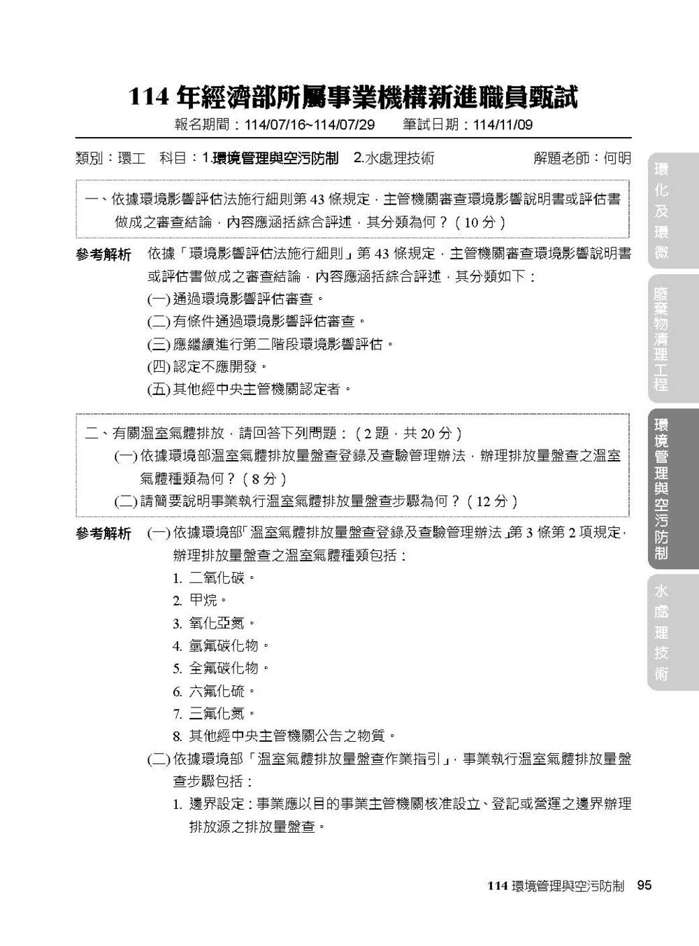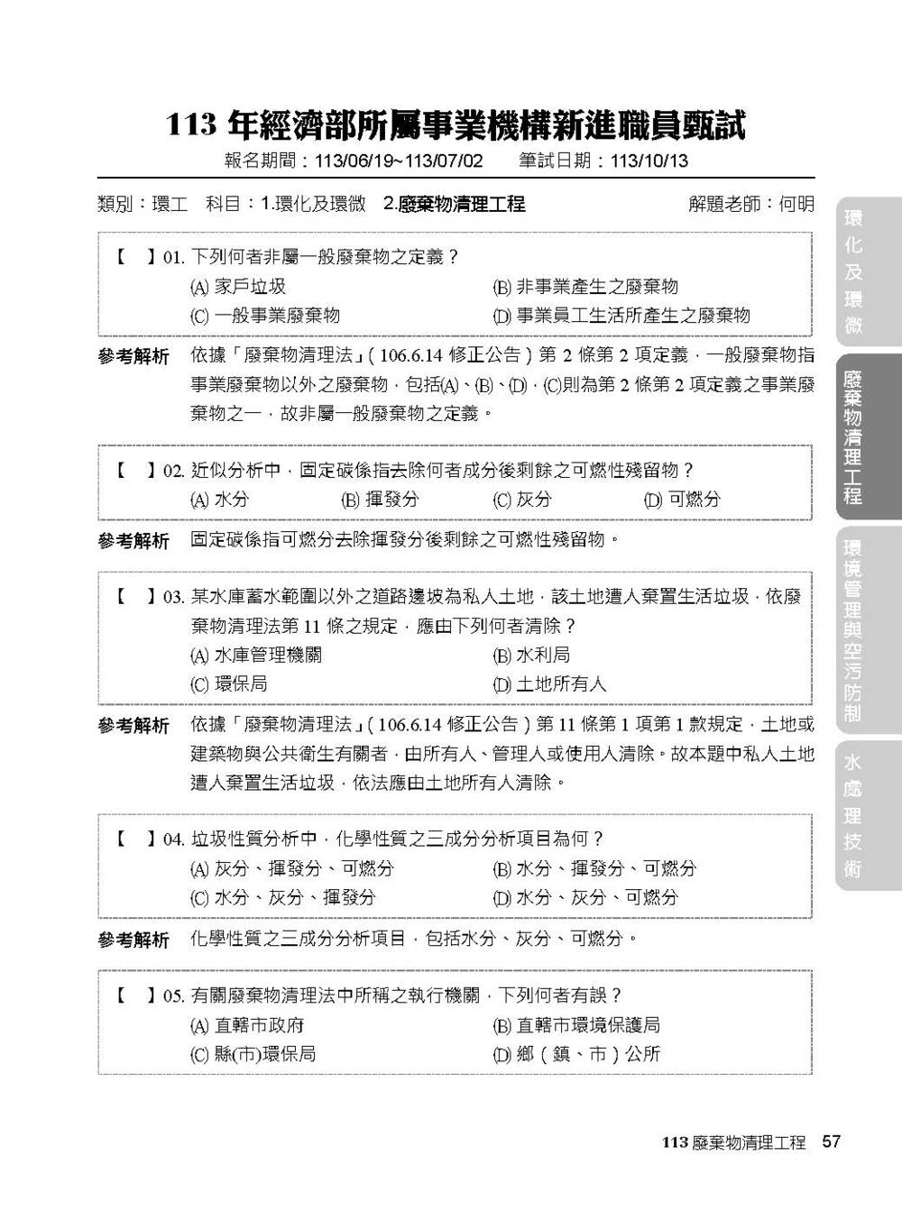 本書收錄包含環工類專業科目(A)環化及環微、廢棄物清理工程;以及專業科目(B)環境管理空污防制、水處理技術。