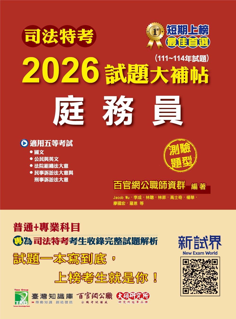 專為【司法特考】考生出版的解題書,完整收錄司法特考(五等)【庭務員】111~114年試題,考前衝刺必備大補帖——