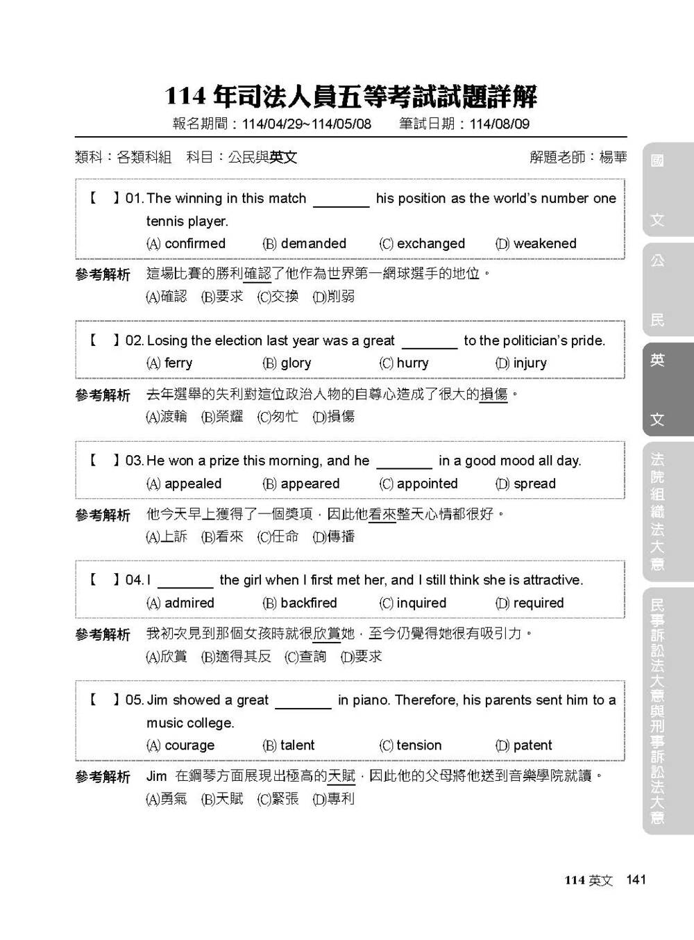 4. 精簡清晰的排版風格,幫助考生在備考壓力下,讓考生以平穩老練的心態做考前練習。