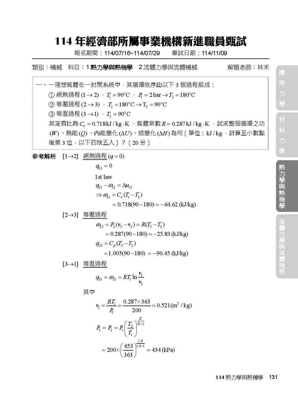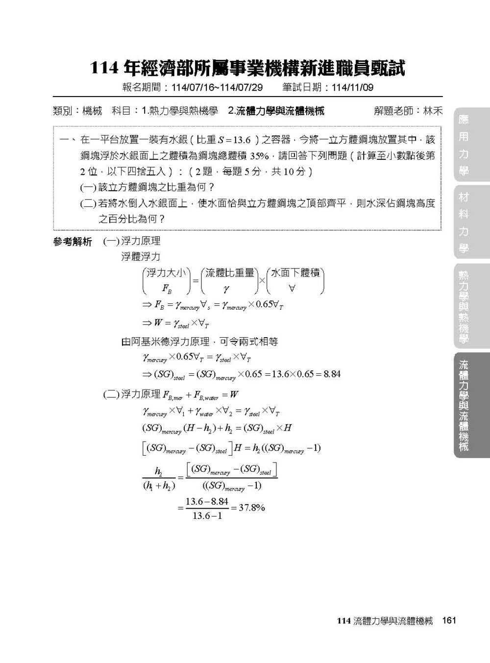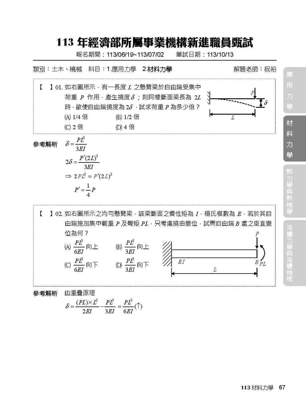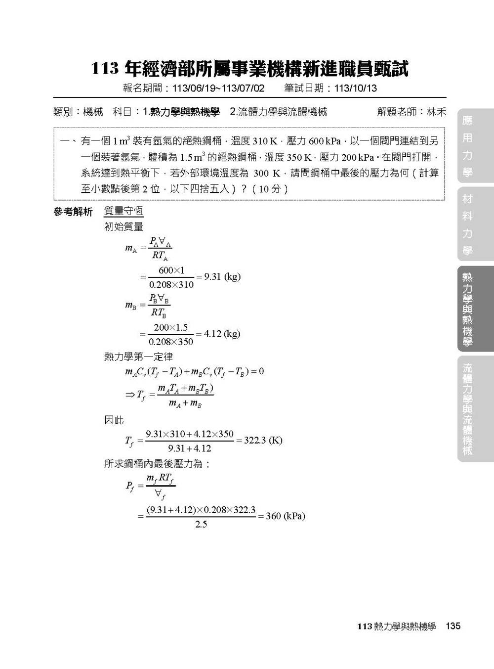 本書收錄包含機械類專業科目(A)應用力學、材料力學;以及專業科目(B)熱力學與熱機學、流體力學與流體機械 。