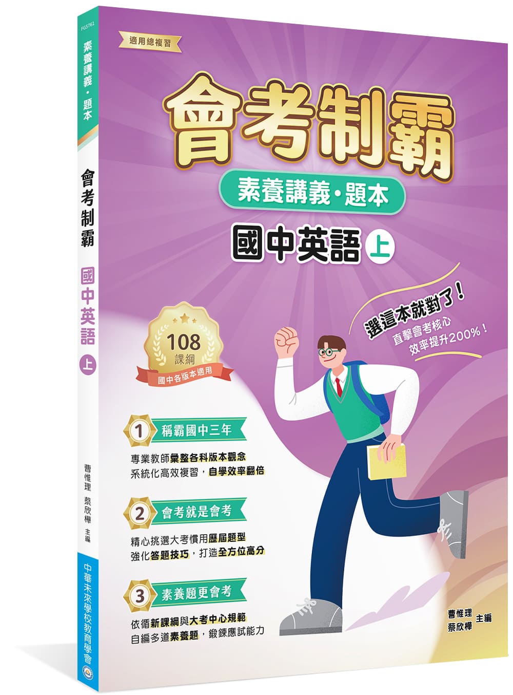 【會考制霸】系列書籍由中華未來學校教育學會專業團隊編寫,本書結合「講義」與題本,講義內容綜整重要觀念,加強學生對於知識點的理解與記憶,再藉由演練精選歷屆題與原創素養題,強化答題實力,學習效率up!