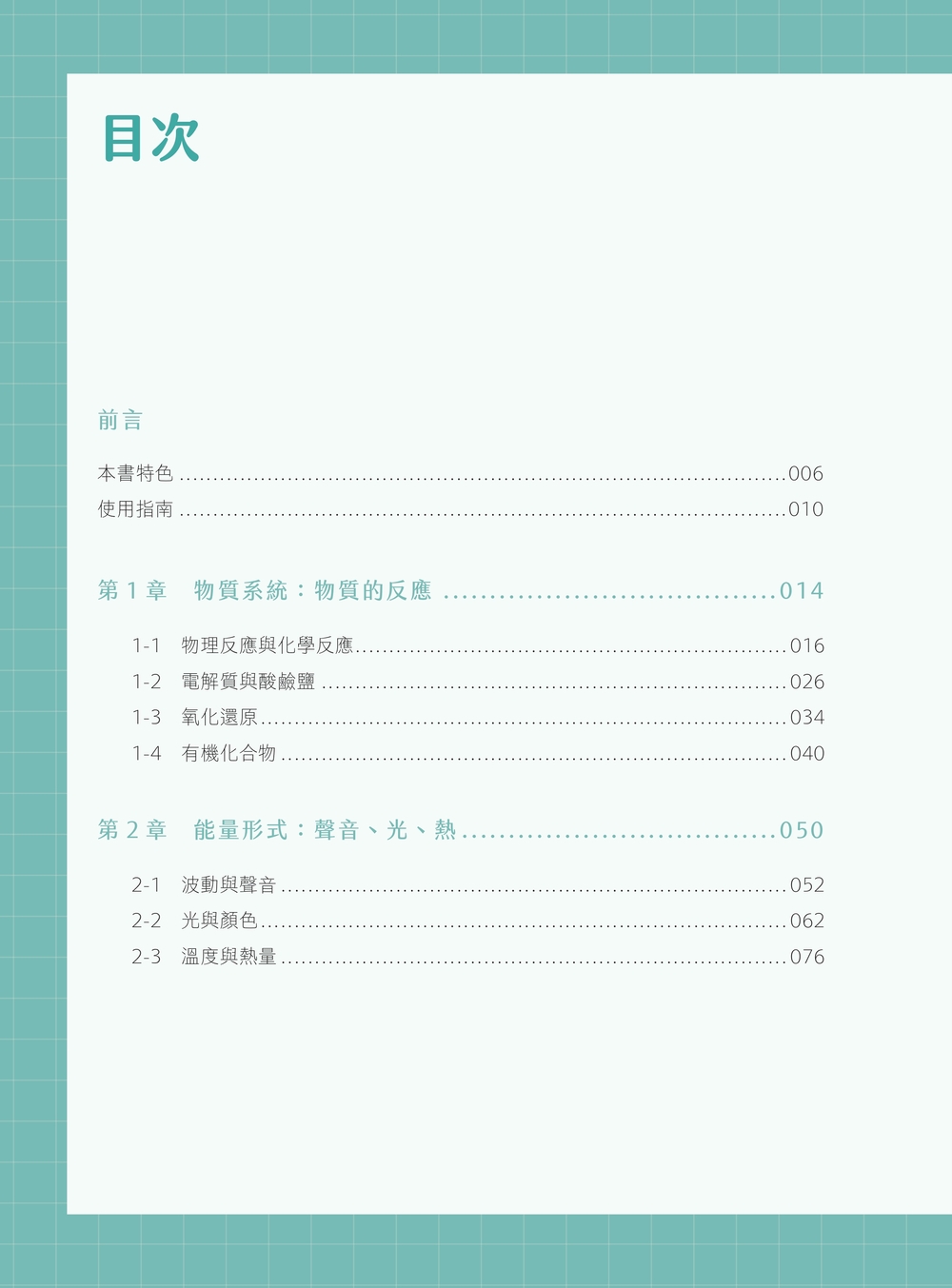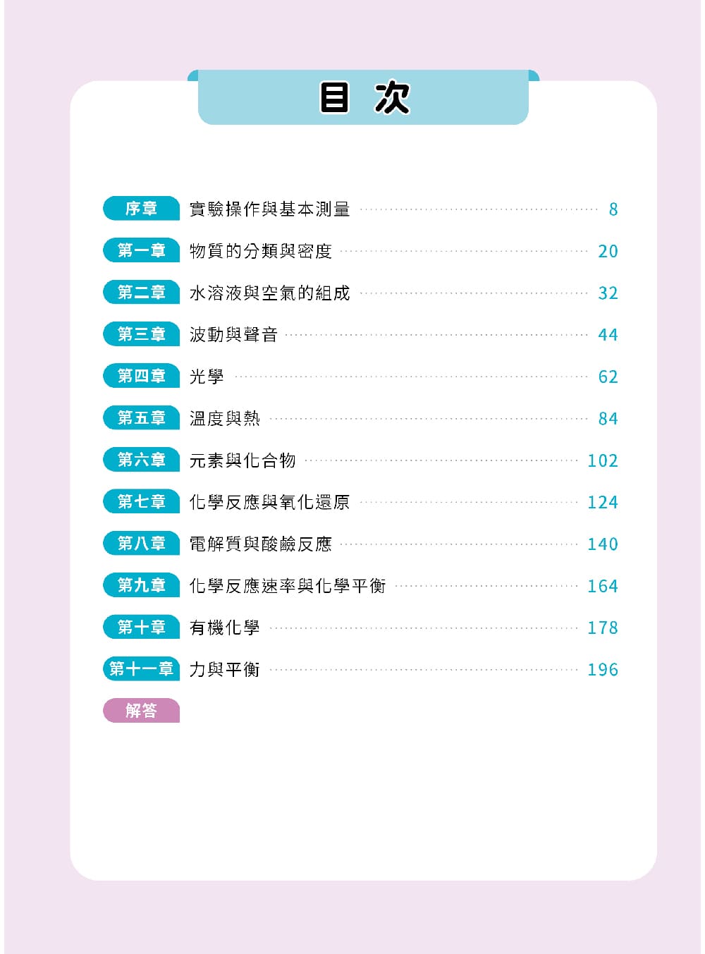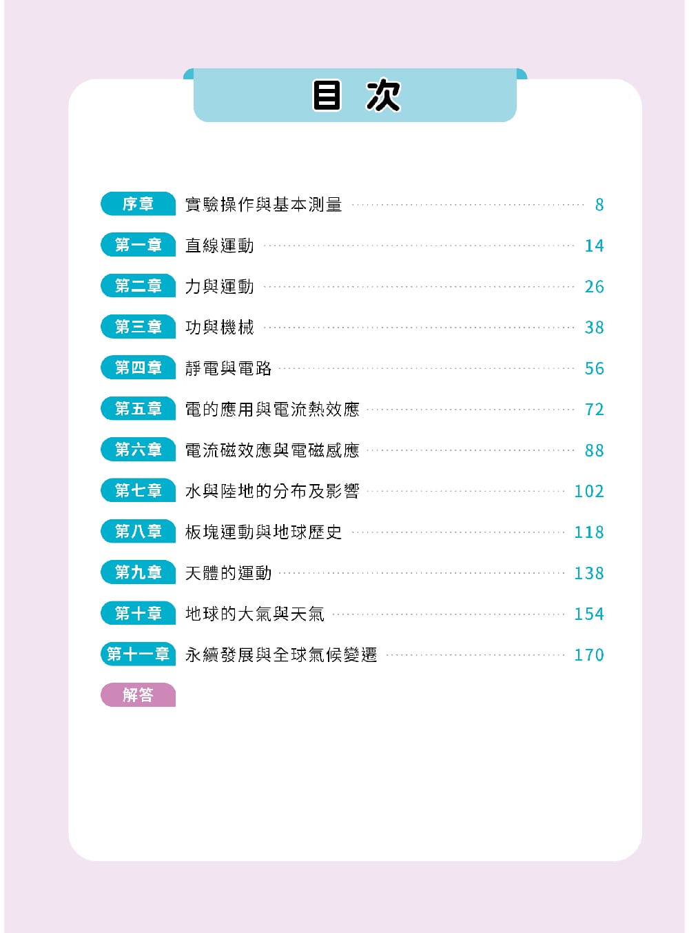 本書匯集之題組所涉及概念遍及國二、三理化範圍,期望讀者藉由本書中的題組,練習應用課程所學理化概念,解決不同情境下,尤其是現實生活中的理化問題,適合正修習國中理化的學生,搭配課程進度,練習本書題目,達到厚植實力效果。