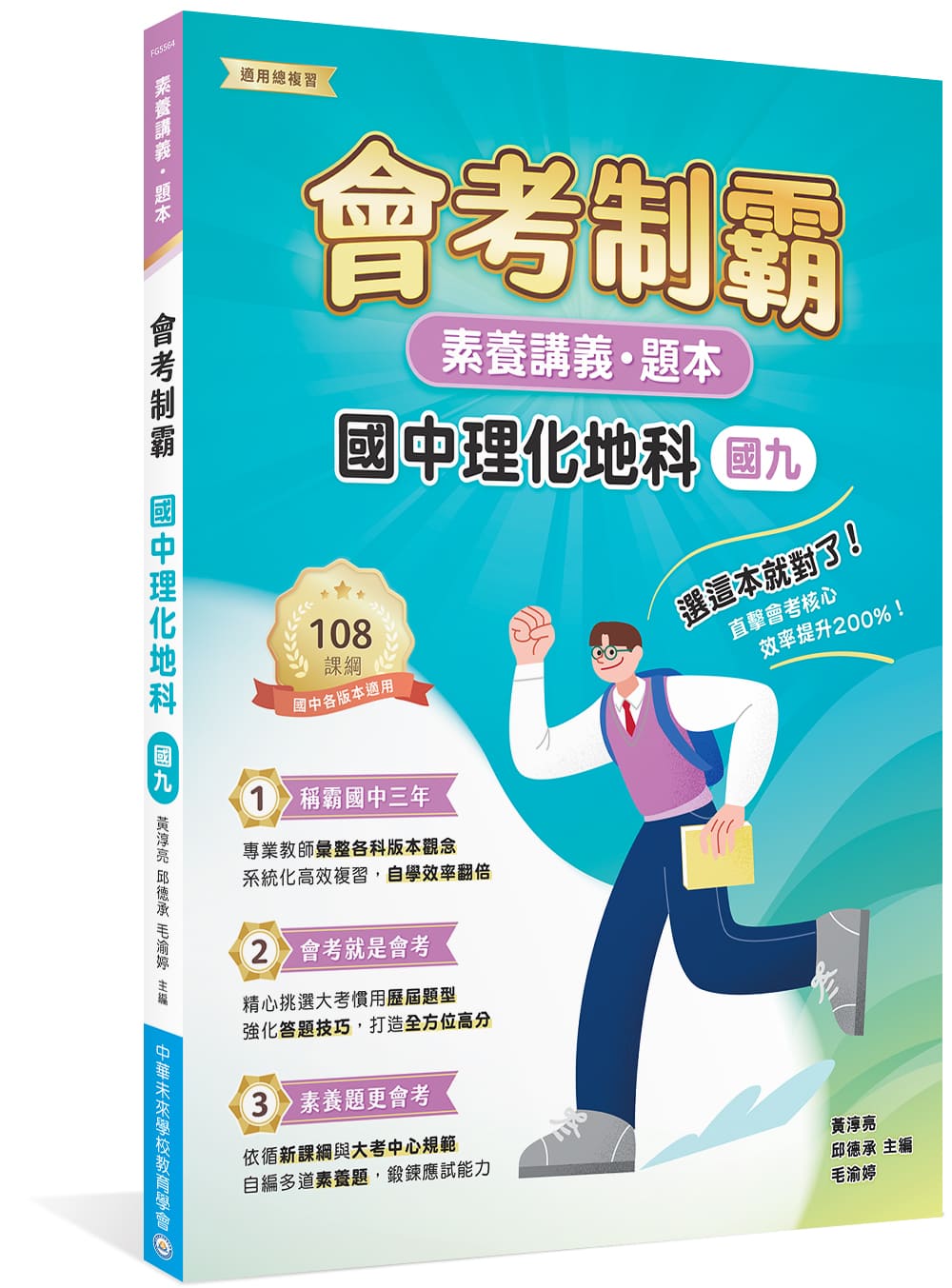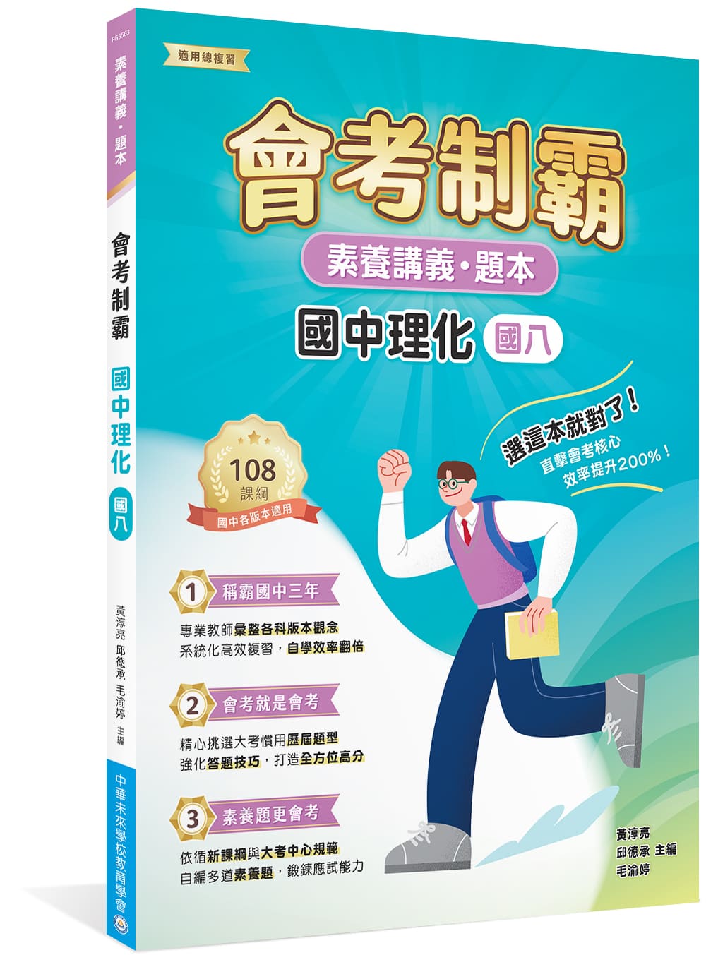 【會考制霸】系列書籍由中華未來學校教育學會專業團隊編寫,本書結合「講義」與題本,講義內容綜整重要觀念,加強學生對於知識點的理解與記憶,再藉由演練精選歷屆題與原創素養題,強化答題實力,學習效率up!