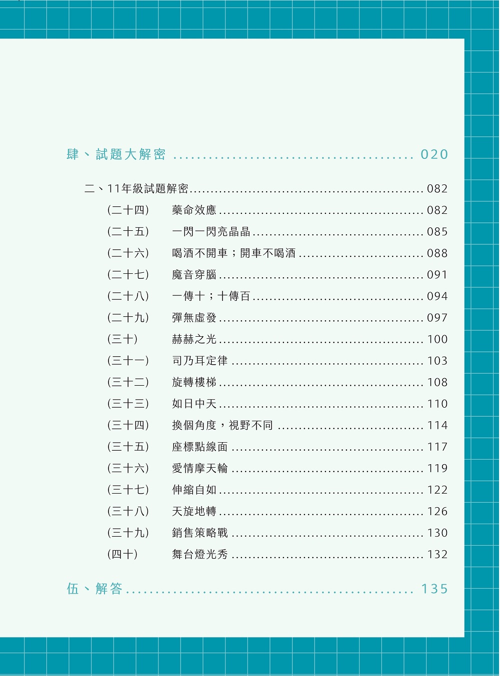 在新課綱的趨勢下,素養檢定叢書能引領學生進行有效思考,除了讓自己掌握素養紙筆測驗的程度,更是培養系統性閱讀策略最佳入門書。——臺灣知識庫董事長 丘昌其