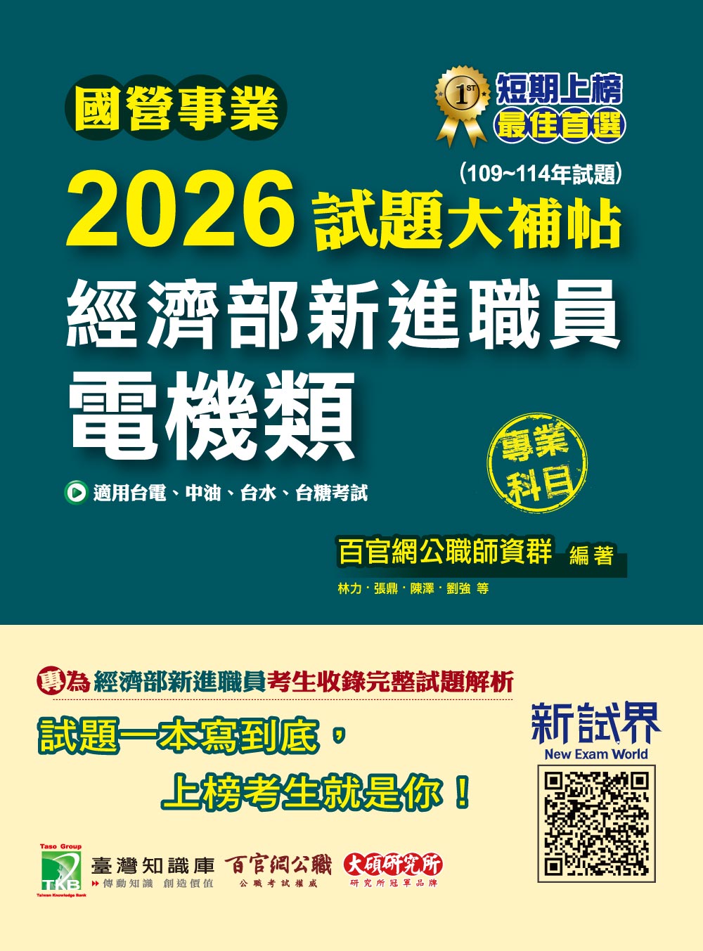 此書適用於經濟部新進職員甄試,想要成為國營事業人員,大多會選擇報考此項國家考試,作為進入國家機關從事電機類領域工作的首要門檻。試題大補帖系列提供報考這類考試的考生,能有一本考前衝刺的歷屆試題演練書,考生只需購買一本書,即可抓住各考科的重點題型。