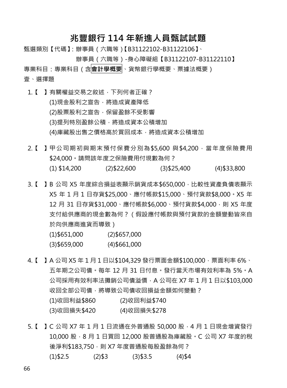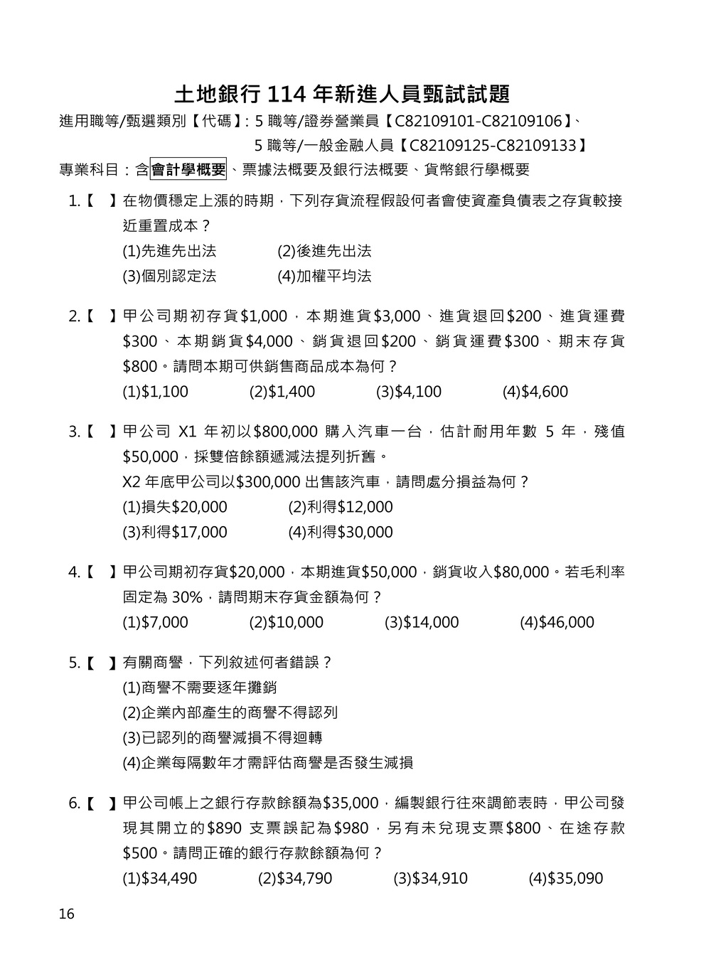 114年 兆豐銀行 第六職等