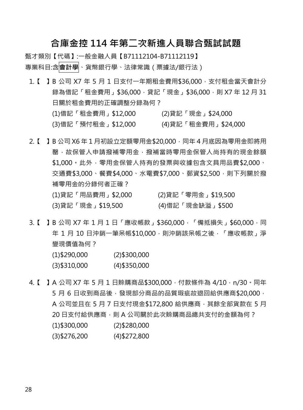 114年 合作金庫 第二次招考