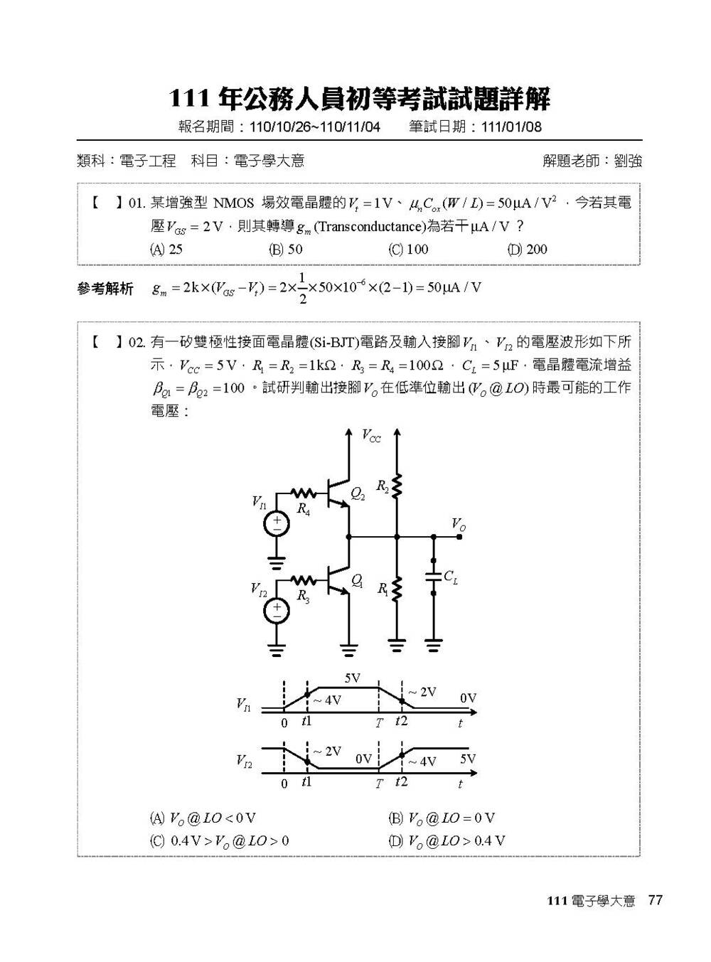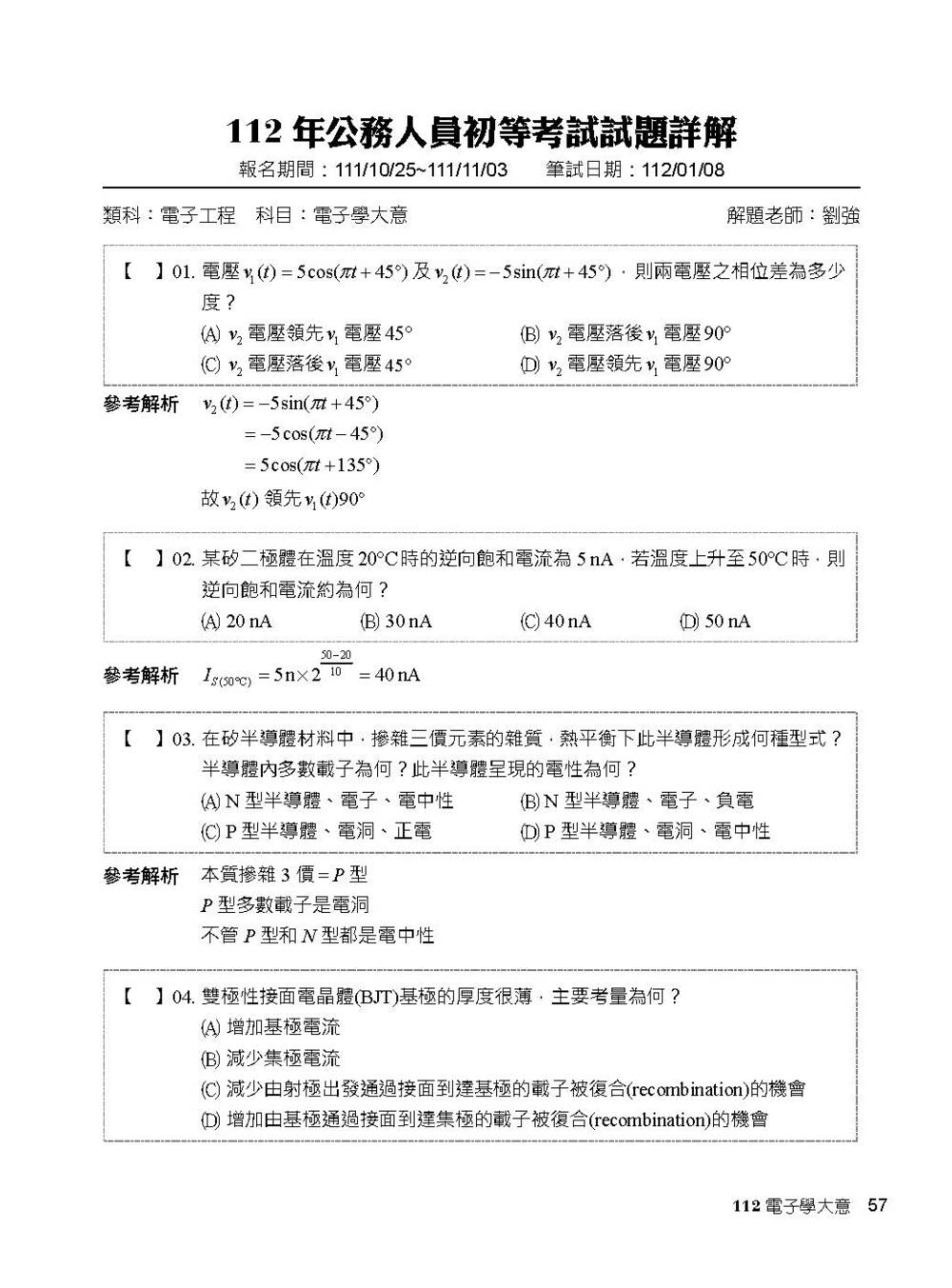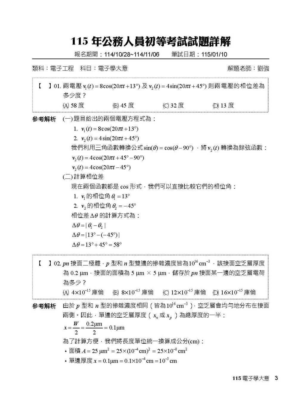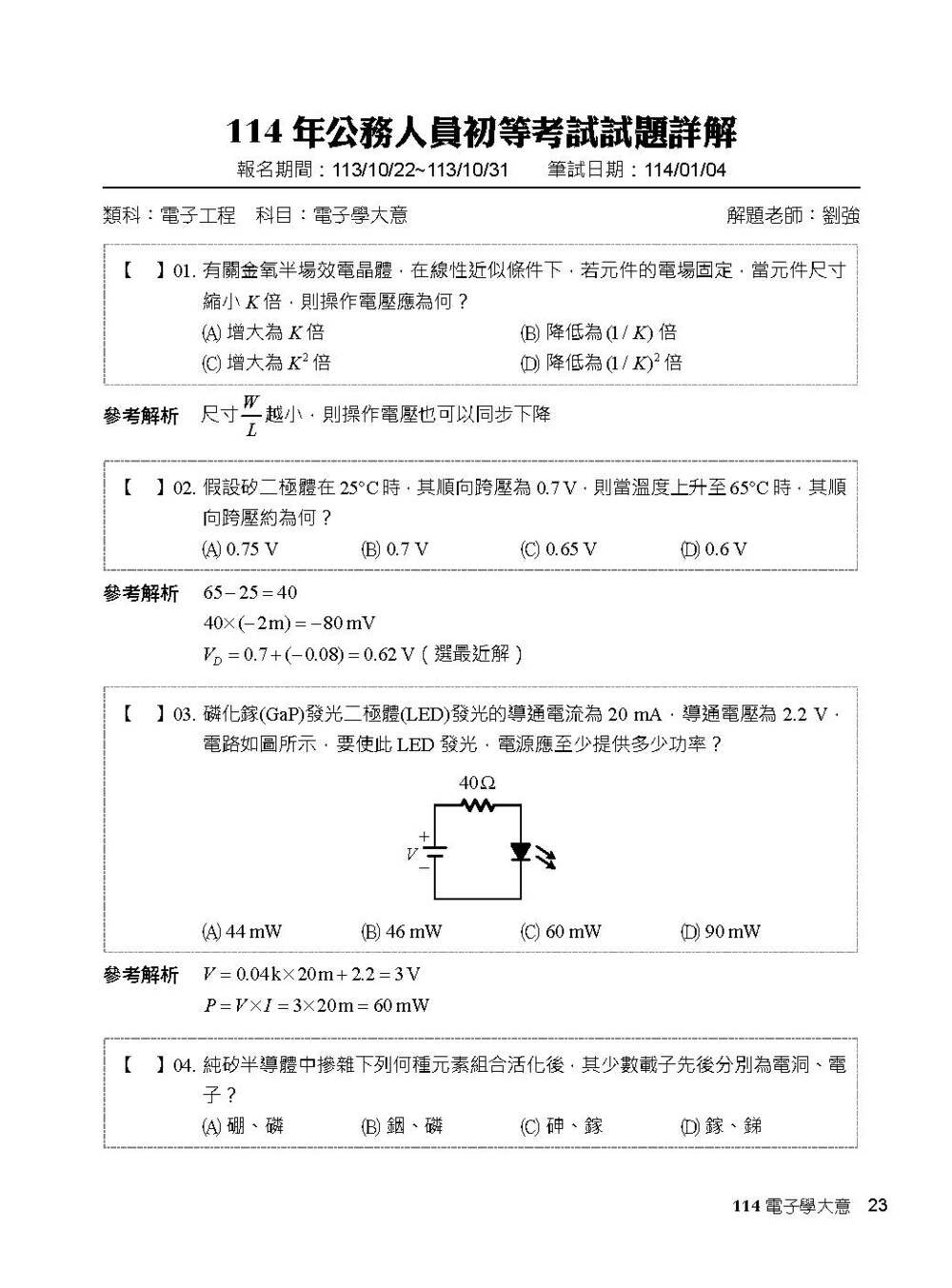 初等考試電子工程類的考科有四種分別出版成書,有: