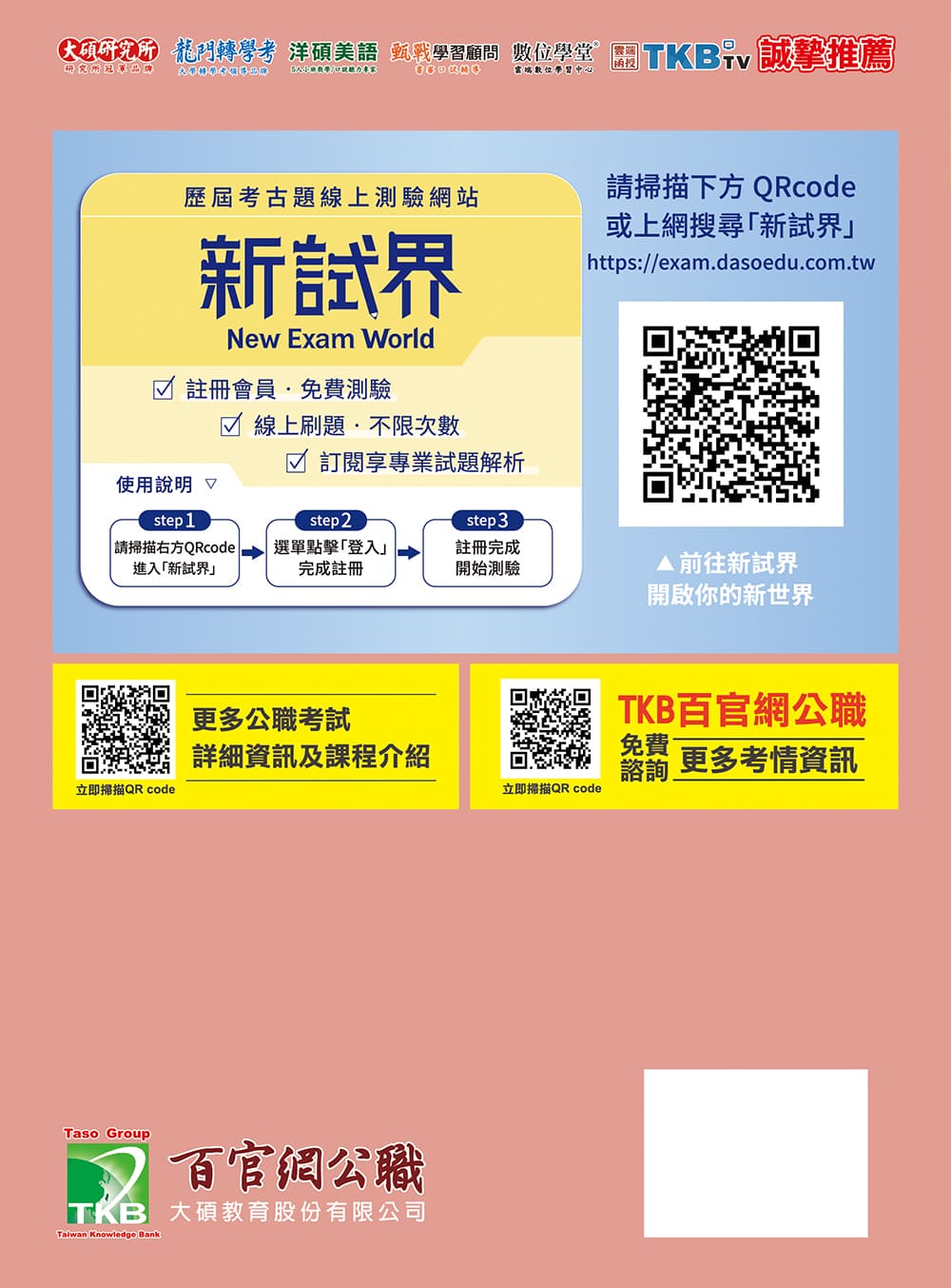 3. 試題大補帖搭配百官網公職,買書即贈200分鐘免費試聽課程。