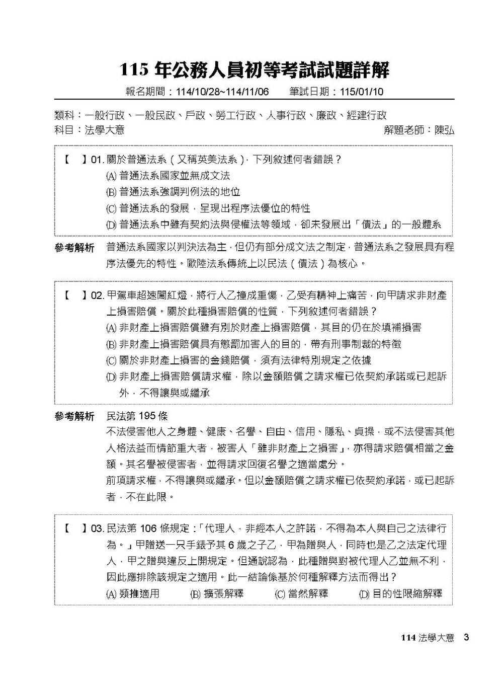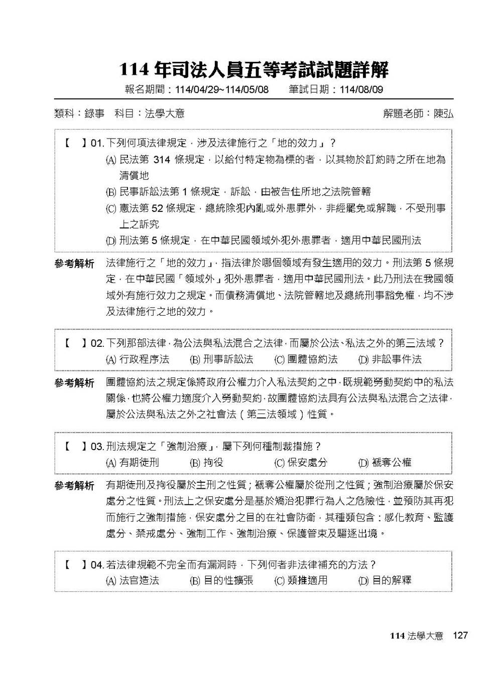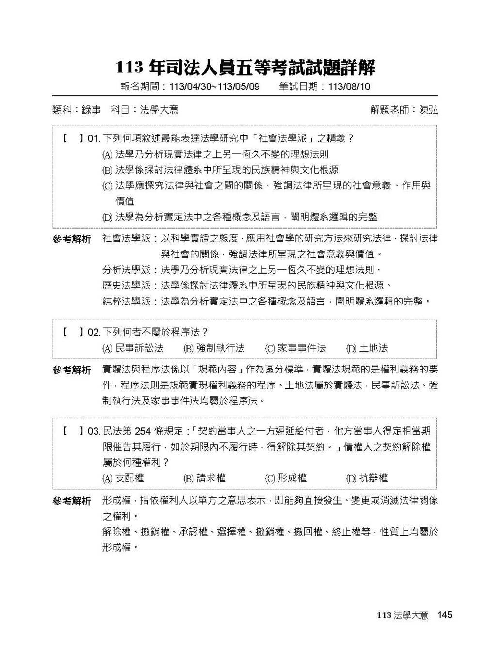 本書收錄初等考試【法學大意】110~115年的測驗試題詳解,幫助您一次準備全面應戰、熟悉題型順利上榜。
