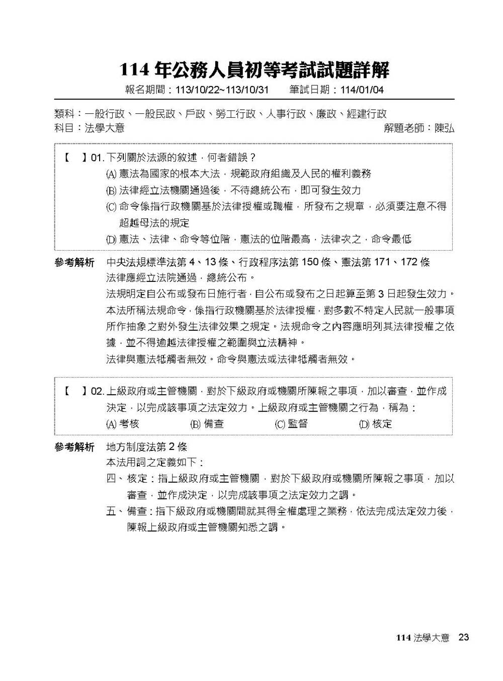(5) 行政學大意(測驗題型):適用一般行政類科