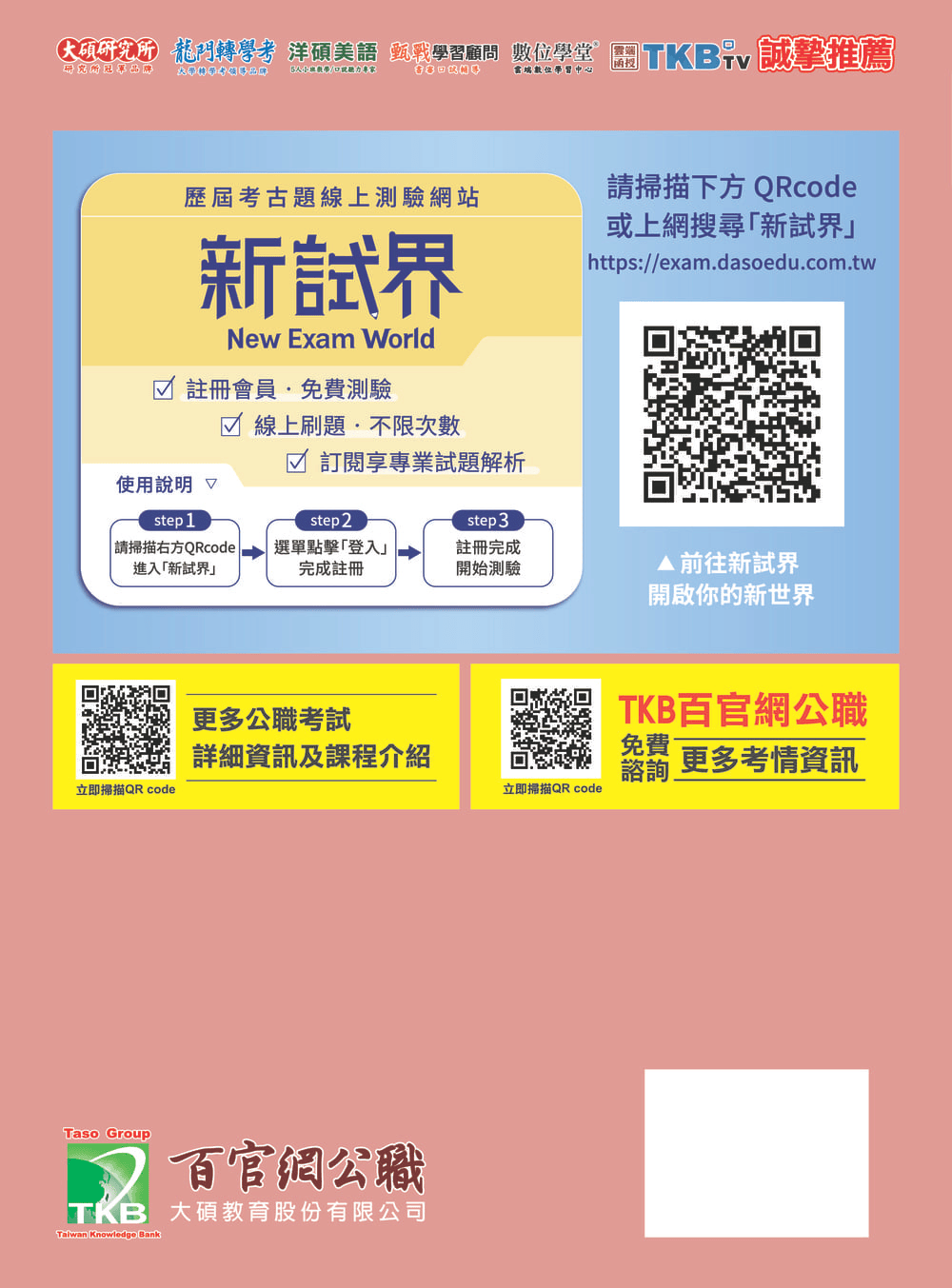4. 試題大補帖搭配百官網公職,買書即贈200分鐘免費試聽課程。