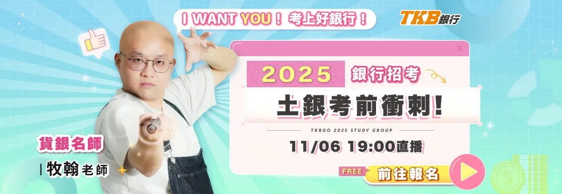 本次TKB銀行講座為【預錄直播回放】,由TKB貨幣銀行學名師牧翰老師帶來土銀考前猜題與解題重點