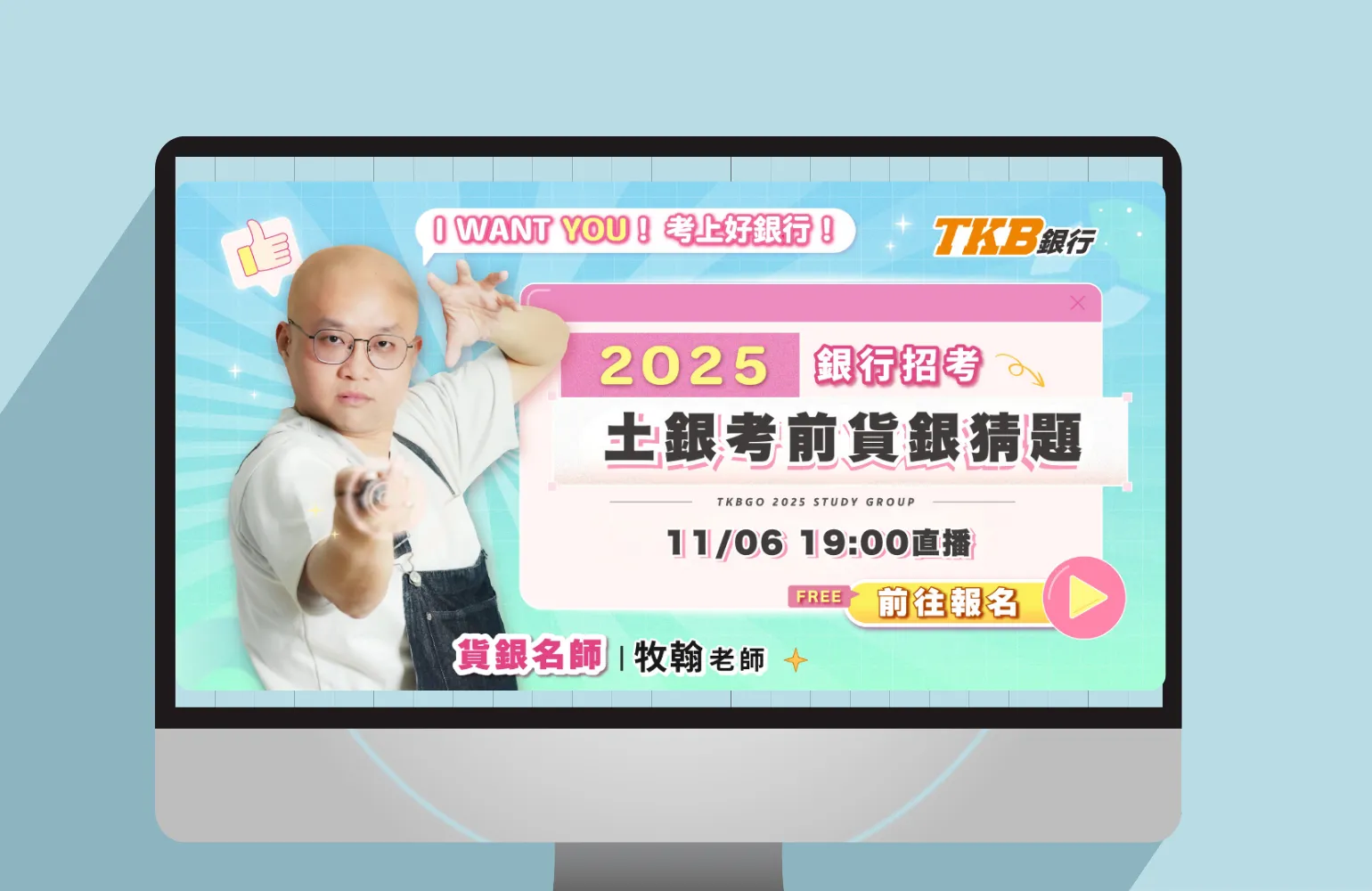 最新講座土銀考前貨銀猜題直播,只要立即填寫報名表單,即可免費獲得直播連結!