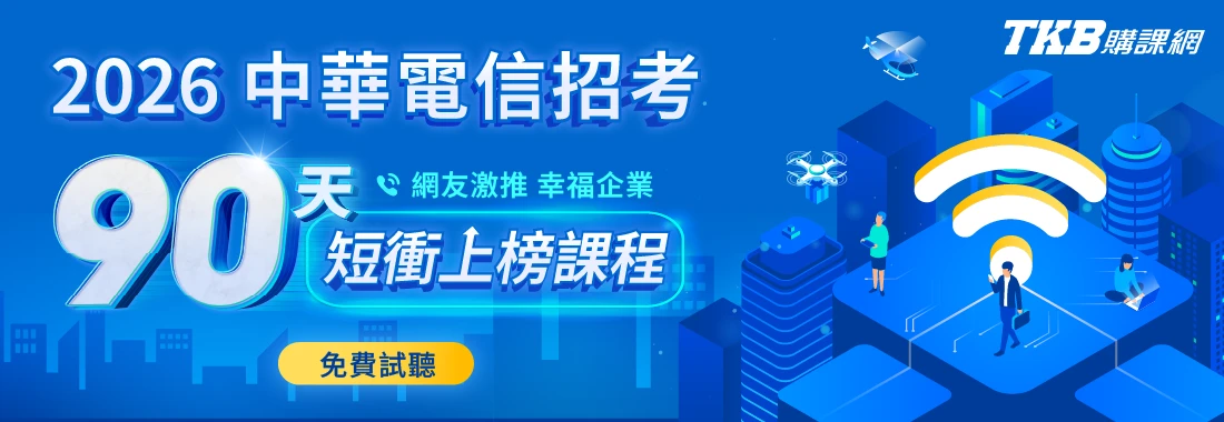 不考英文的國營考試|哪個國營好考?不考英文國營考試推薦 哪個國營好考?不擅長英文能考國營嗎? 雖然在多數國營考試中,英文的占比都不高,但對於不擅長英文的考生來說,如果有不考英文的國考,絕對可以讓準備時間大幅減少,將焦點放在自己擅長的專業科目。不過有哪些是不考英文的國營考試呢? 不考英文的國營考試,首先會先想到台鐵招考, 但國營考試百百種,還有許多不考英文的國營考試,如果不想花時間準備英文,這些國營考試很適合。 本篇文章將為大家盤點不考英文的國營考試,推薦給正在煩惱該考哪個單位的你。 ▼ 專人規劃專屬備考計畫 ▼ 諮詢國營考試 不考英文的國營考試一覽 考試 職等/職階 考試時間 薪資待遇 學歷限制 台鐵招考 第 8 階 2026 年 3 月 $45,130 大學畢業 第 9 階 $42,580 專科畢業 第 11 階 ~ 第 10 階 $37,230 ~ $40,010 高中職畢 港務招考 師級 2026 年 3-4 月 $58,410 大學畢業 員級 $42,830 ~ $49,690 高中職畢 中華電信招考 電信線路建設與維運 2026/03/14 $50,020 以上 大學畢業 ▼ 國營考試時間不固定 ▼ 查看最新國營考試日期 不考英文的國營考試介紹 實際招考類組依當年度簡章公告為主。 台鐵招考 台鐵公司化招考台鐵從業人員,共同科目不考英文,皆只需考作文及專業科目。 值得一提的是,第九階至第十一階專業科目皆考選擇題,不考英文又是全選擇題,準備起來更加無壓力! 職階/職稱 招考類組 精選課程 第 8 階 助理管理師/助理工程師 運務、土木工程、電機、會計、事務管理、人力資源、財務管理等 諮詢專員 第 9 階 事務員/技術員 運務、土木工程、機械、電機、會計、企劃研析、事務管理、人力資源、財務管理等 課程試聽 第 10 階 助理事務員/助理站務員/助理技術員 運務、土木工程、電務、電力、會計、事務管理、人力資源、機械、電機等 課程試聽 第 11 階 服務員 運務、土木工程、電機、機械、事務管理、養路工程、餐旅服務等 課程試聽 港務招考 港務招考分為師級及員級,師級需大學畢業具相關工作經驗或碩士畢業,部分類組有科系限制;員級只需高中職畢業,部分類組有科系限制。 無論是師級或員級,筆試共同科目皆不考英文,只考作文與國文測驗。 港務招考的外語能力判斷標準是採「筆試加分條件」,如果有最近 5 年內取得「臺灣港務股份有限公司英語檢測標準對照表」或「臺灣港務股份有限公司除英語外之其他語言檢測標準對照表」中,相當全民英檢中級以上外語檢定資格者,筆試原始成績加 5%。 師級/員級 招考類組 精選課程 師級 航運管理、業務管理、資訊管理、土木、電機、機械、會計、法務等 課程試聽 員級 航運管理、航運技術、業務行政、交通管理、交通技術、資訊管理、資訊工程、土木、電機、機械、環保、會計等 課程試聽 中華電信招考 超級熱門的中華電信招考分為六個甄試類組,幾乎每個類組皆需考英文,唯獨電信線路建設與維運普通科目不考英文,而是考邏輯思維,專業科目也僅考基本電學及計算機概論。 單位 招考類組 精選課程 中華電信 電信線路建設與維運 課程試聽 不考英文的國營考試怎麼準備 不考英文的國營考試類組廣泛,所以首先要先選定適合自己的類組, 如果是理組出身,或是可以接受勞力技術型的現場工作,可以往錄取率較高的技術、理工類組挑選; 如果是文組出身,或是想要較單純的辦公室環境,則可往文科、商管類組選擇。 而不考英文的國考,就需透過專業課程輔導,將更多心力花在專業科目上, 部分國營考試(如:港務招考)筆試雖然不考英文,但有外語能力證照就有額外加分優勢,因此也可以考慮補齊較擅長的第二外語證照,不只考試就業,對於個人生涯規劃也有幫助。 教你選定類組 專注考試科目 補齊加分證照 免費專人諮詢 國營考試精選課程 TKB 日文/英文課程 更多國營考試推薦閱讀 ➥ 最新國營事業招考/國營事業考試時間一覽表 ➥ 【國營口面試準備】1對1口試輔導|國營口面試專班|決戰國考錄取關鍵 ➥ 國營補習費用知多少|百官網國營雲端課程價錢、國營補習班課程一覽 TKB國營考試資訊站 | Line TKB國營考試資訊站 | 粉絲專頁 國考疑難雜症詢問 按讚追蹤考試資訊 ▲ TOP 文:周孟玟