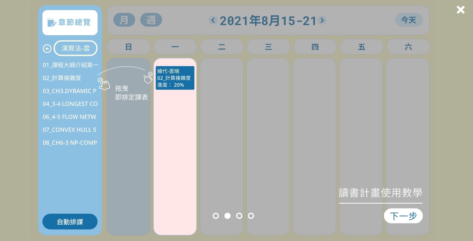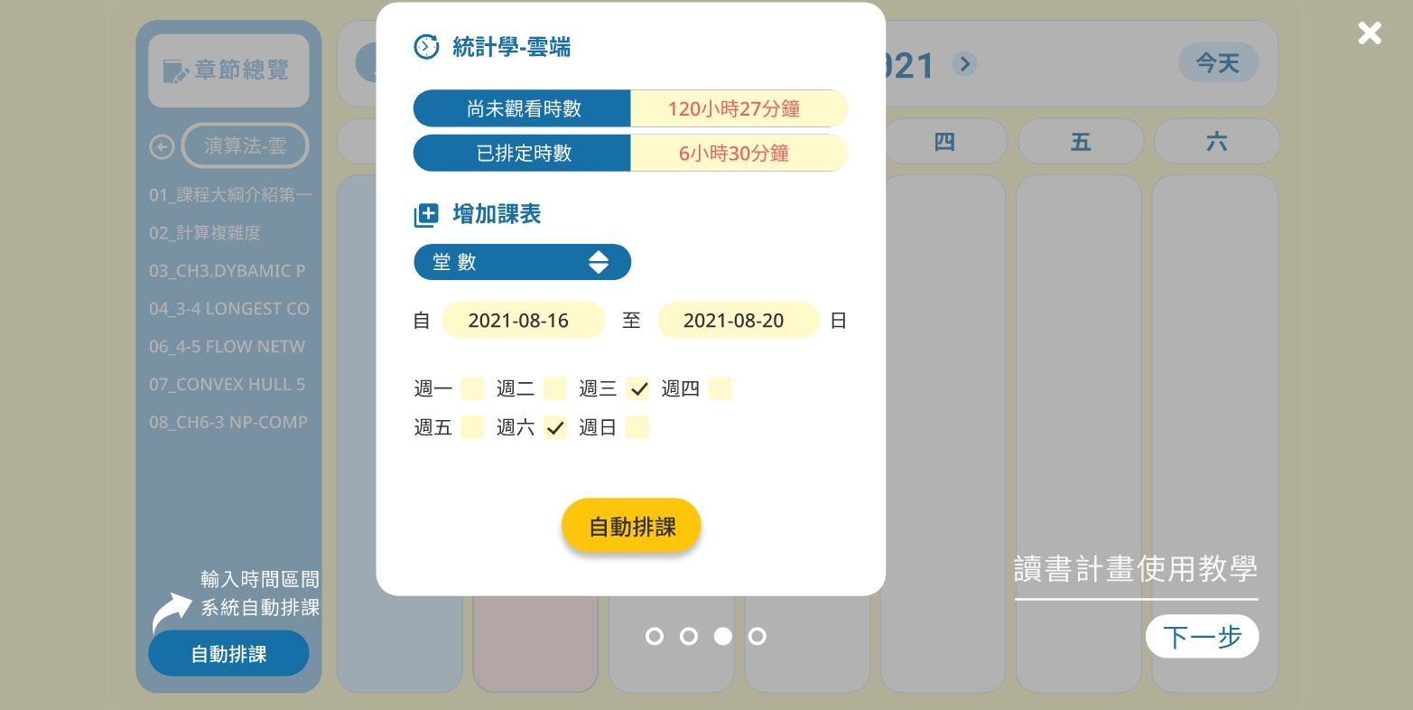 同學可以依照自身空閒的時段,讓系統自動安排課程進度。